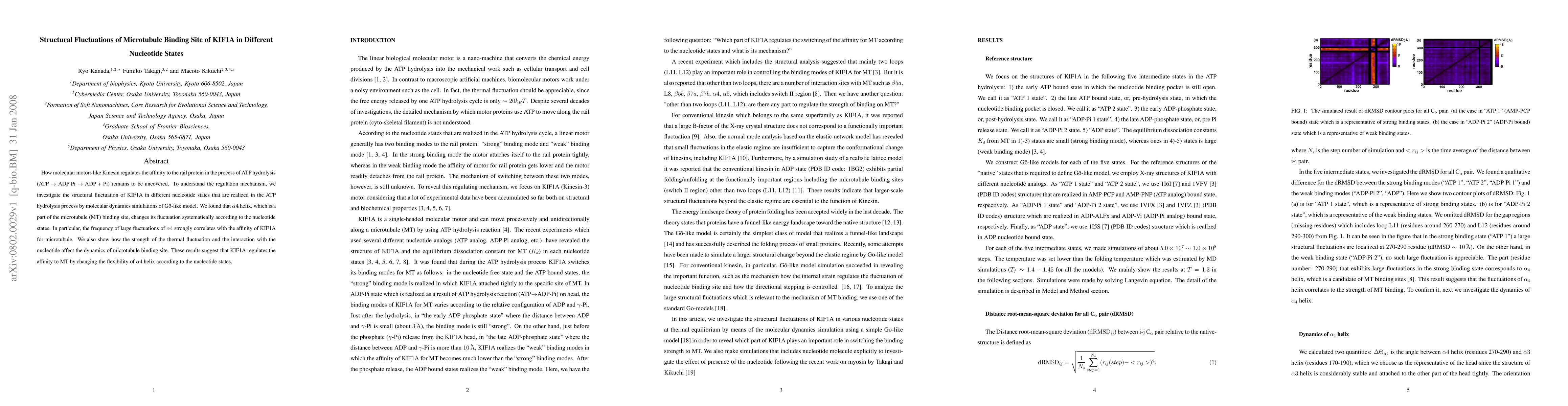 This study uses molecular dynamics simulations to explore KIF1A, a molecular motor, and its microtubule binding affinity regulation during ATP hydrolysis. Key findings indicate that the 'alpha4 helix' within KIF1A's microtubule binding site fluctuates systematically with nucleotide states, with larger fluctuations correlating to lower microtubule affinity. The research suggests KIF1A adjusts its microtubule affinity by modulating alpha4 helix flexibility based on nucleotide states.