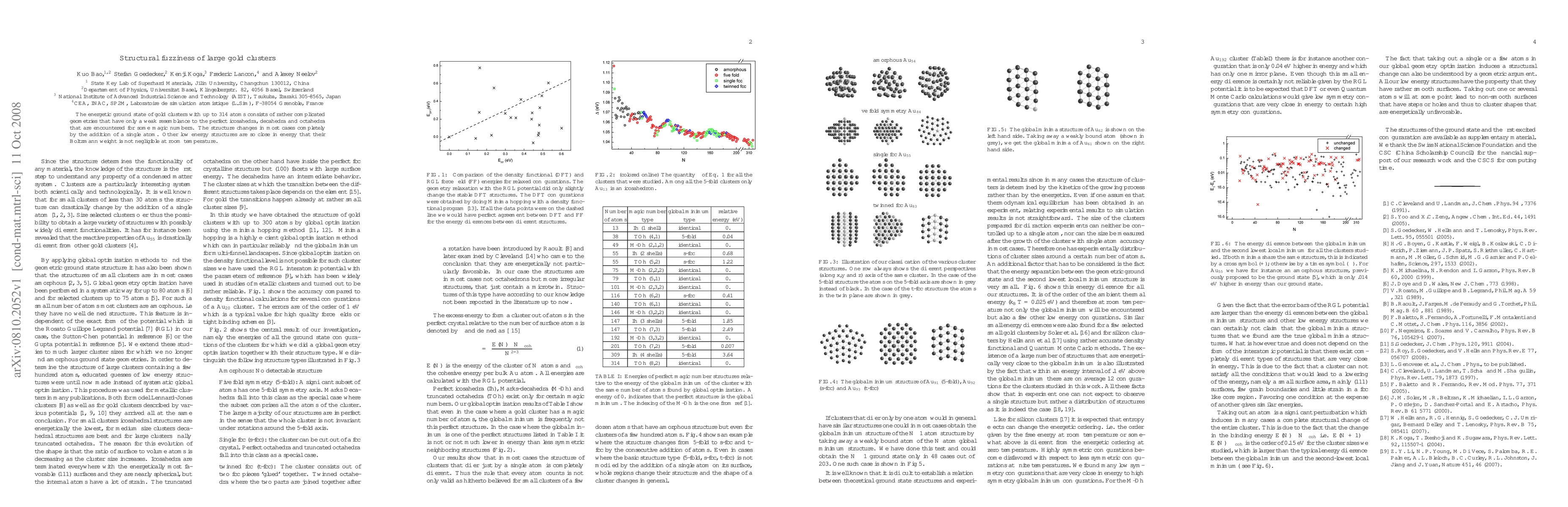 The energetic ground state of gold clusters with up to 314 atoms consists of rather complicated geometries that have only a weak resemblance to the perfect icosahedra, decahedra and octahedra that are encountered for some magic numbers. The structure changes in most cases completely by the addition of a single atom. Other low energy structures are so close in energy that their Boltzmann weight is not negligible at room temperature.
