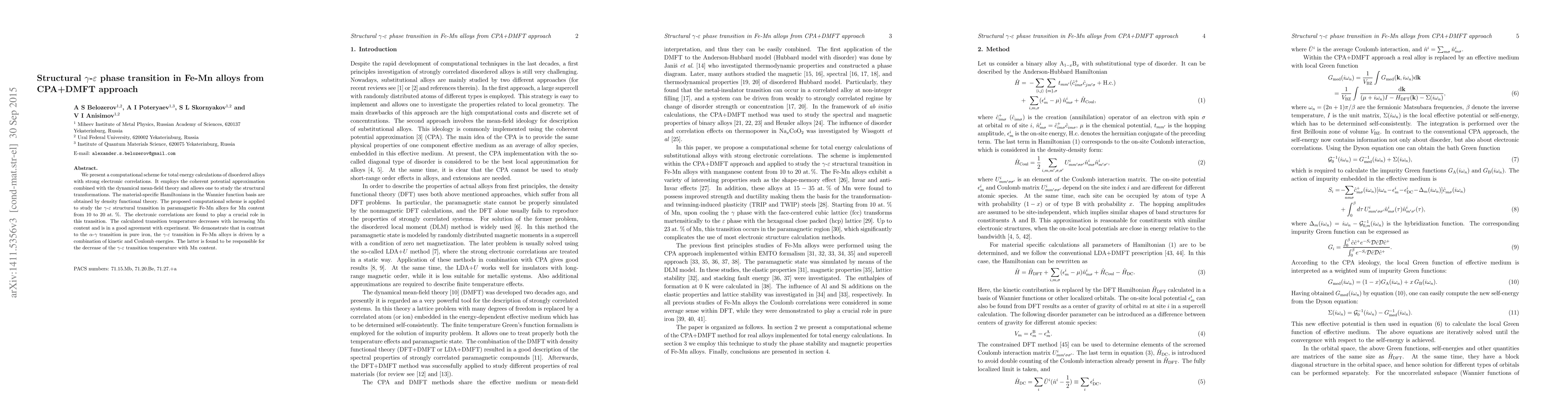 This paper uses a computational scheme combining the coherent potential approximation with dynamical mean-field theory to study the ${\gamma\textrm{-}\varepsilon}$ phase transition in Fe-Mn alloys, finding that electronic correlations significantly influence the transition temperature, which decreases with increasing Mn content.