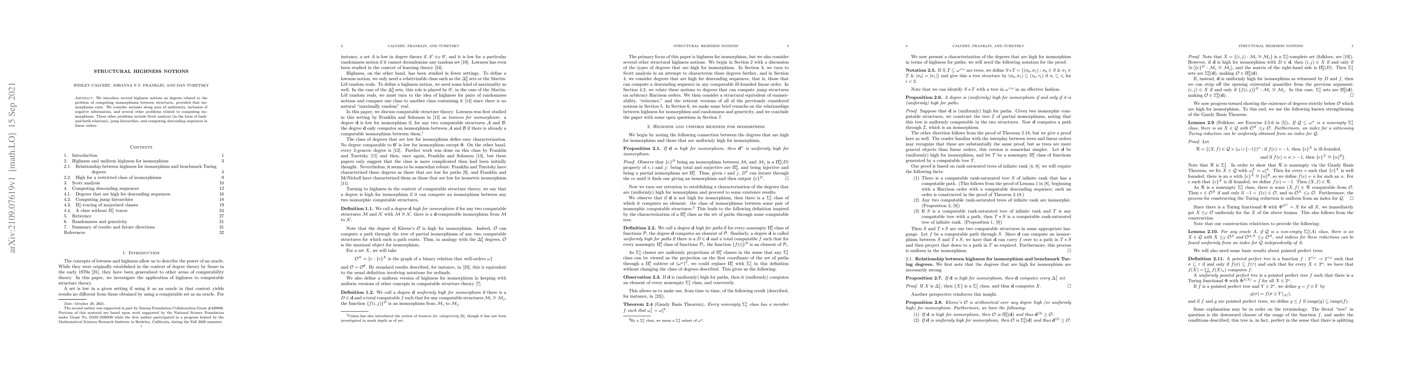 This paper introduces various highness notions on degrees relevant to computing isomorphisms between structures, exploring uniformity, negative information inclusion, and related problems like Scott analysis, jump hierarchies, and descending sequences in linear orders. The focus is on the complexity and structure of these notions in the context of isomorphism computation.