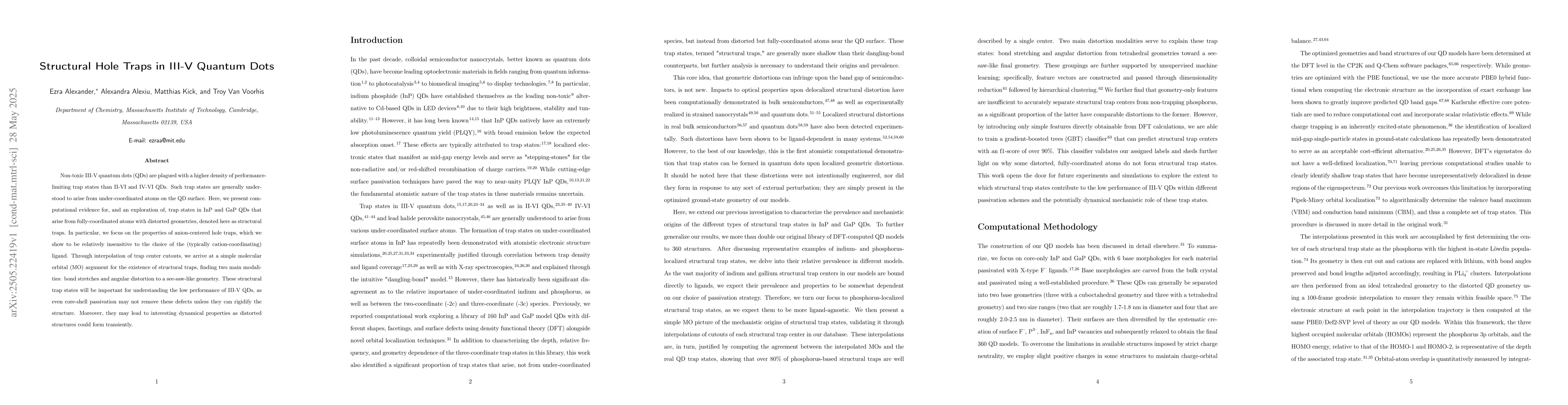 Research reveals that III-V quantum dots have trap states due to structural distortions in fully-coordinated atoms, affecting their performance. These 'structural traps' may require new approaches to improve the efficiency of these nanocrystals.