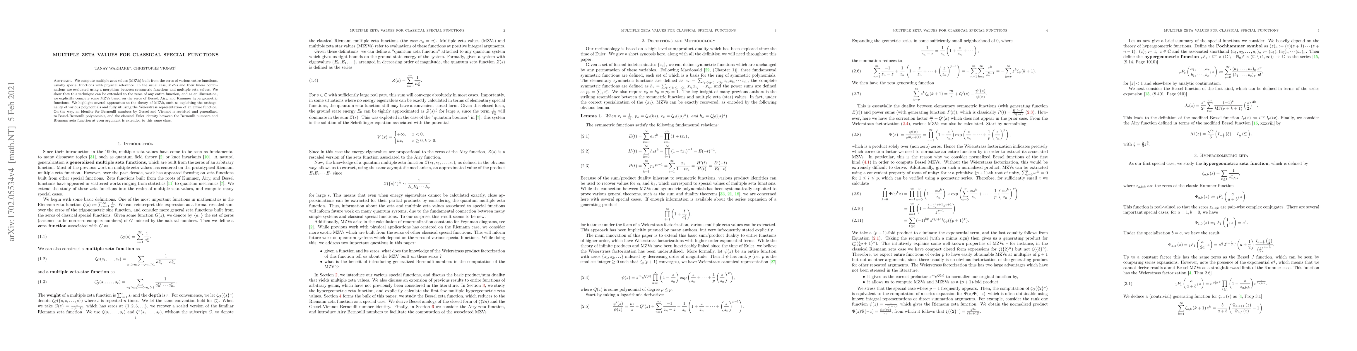 The paper proposes categorizing multiple zeta value identities into structural and specific types, systematically investigating structural identities through symmetric functions. It also evaluates certain multiple Bessel and Hurwitz zeta values and interprets generalized multiple zeta values as moments of a random variable.