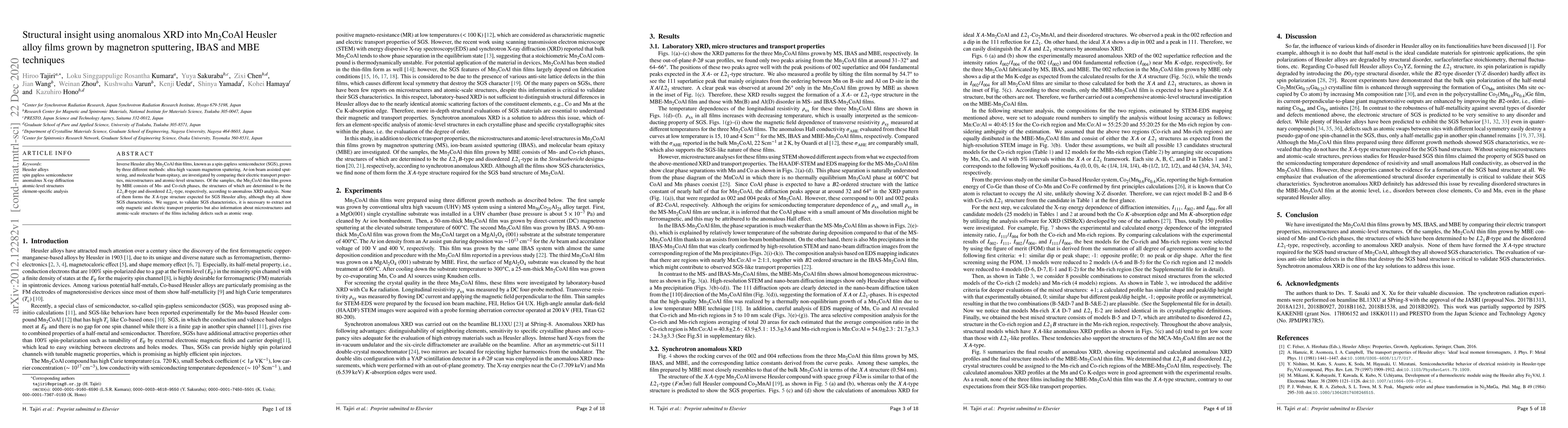 This study investigates Mn2CoAl thin films using three growth techniques and finds that while all samples exhibit spin-gapless semiconductor characteristics, only the MBE-grown film reveals distinct Mn- and Co-rich phases with L21B-type and disordered L21-type structures via anomalous XRD analysis. The research underscores the importance of considering microstructures and atomic-level defects to validate SGS properties.