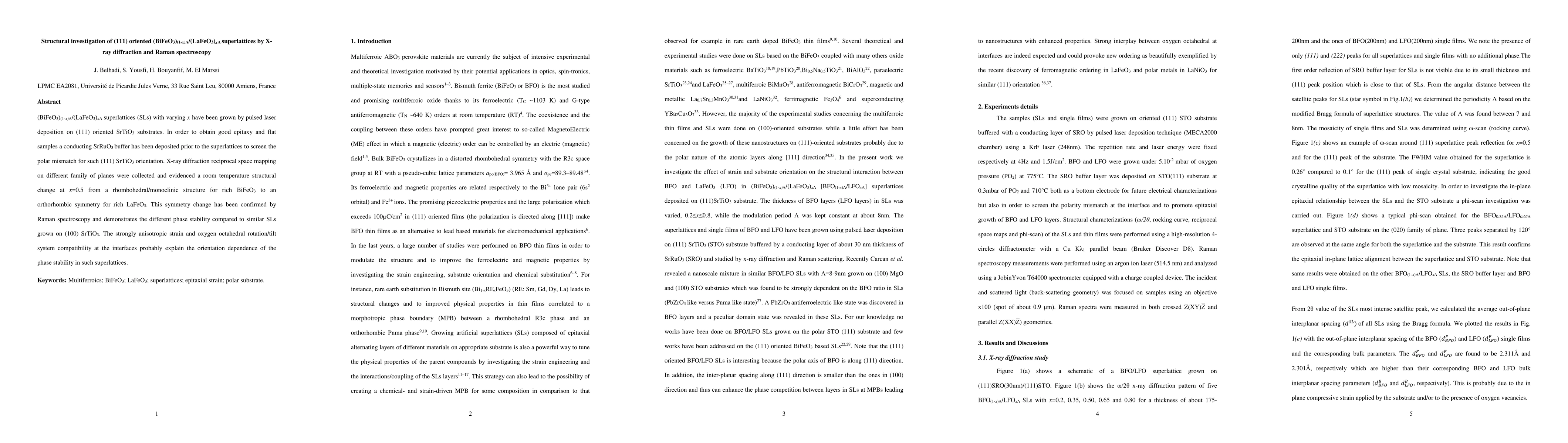 This research investigates (BiFeO3)(1-x){Lambda}/(LaFeO3)x{Lambda} superlattices grown on (111) oriented SrTiO3, revealing a structural change at x=0.5 from rhombohedral/monoclinic to orthorhombic symmetry using X-ray diffraction and Raman spectroscopy. The findings suggest interface strain and oxygen octahedral rotation/tilt compatibility influence phase stability, varying with substrate orientation.