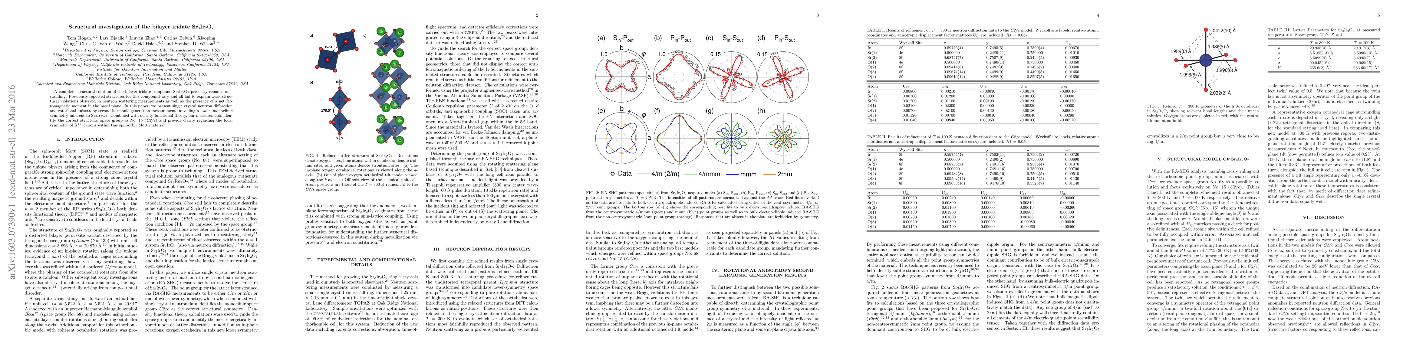 The research utilized single crystal neutron diffraction and rotational anisotropy second harmonic generation measurements on Sr3Ir2O7 to determine its structural solution.