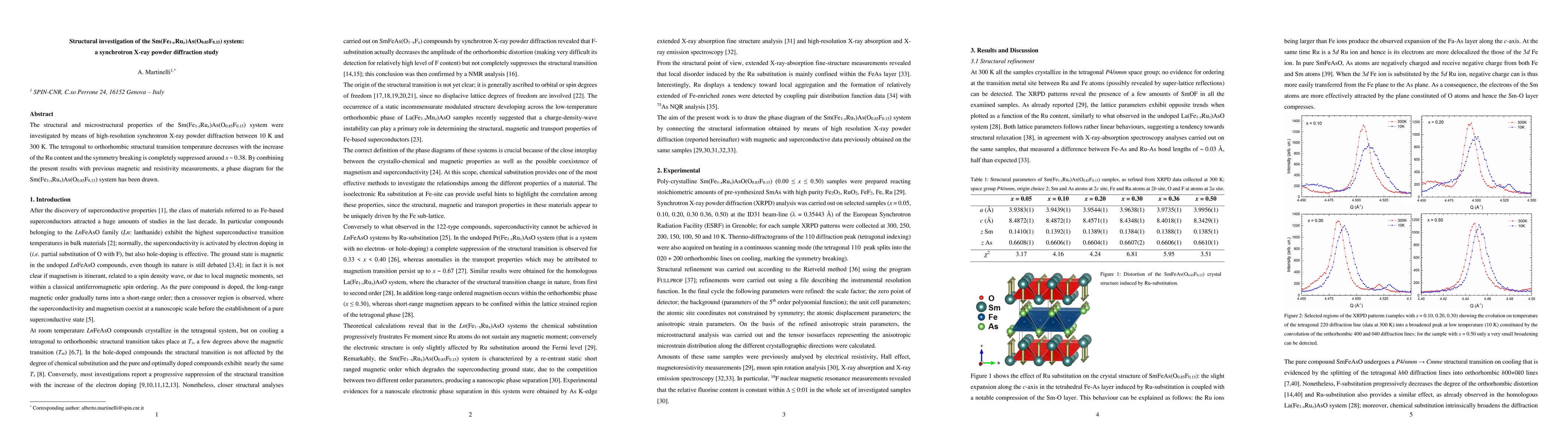 This study investigates the structural properties of the Sm(Fe1-xRux)As(O0.85F0.15) system using synchrotron X-ray powder diffraction, revealing a decrease in the tetragonal to orthorhombic transition temperature with increasing Ru content, and complete suppression of symmetry breaking around x ~ 0.38. The findings contribute to a comprehensive phase diagram combining structural, magnetic, and resistivity data.