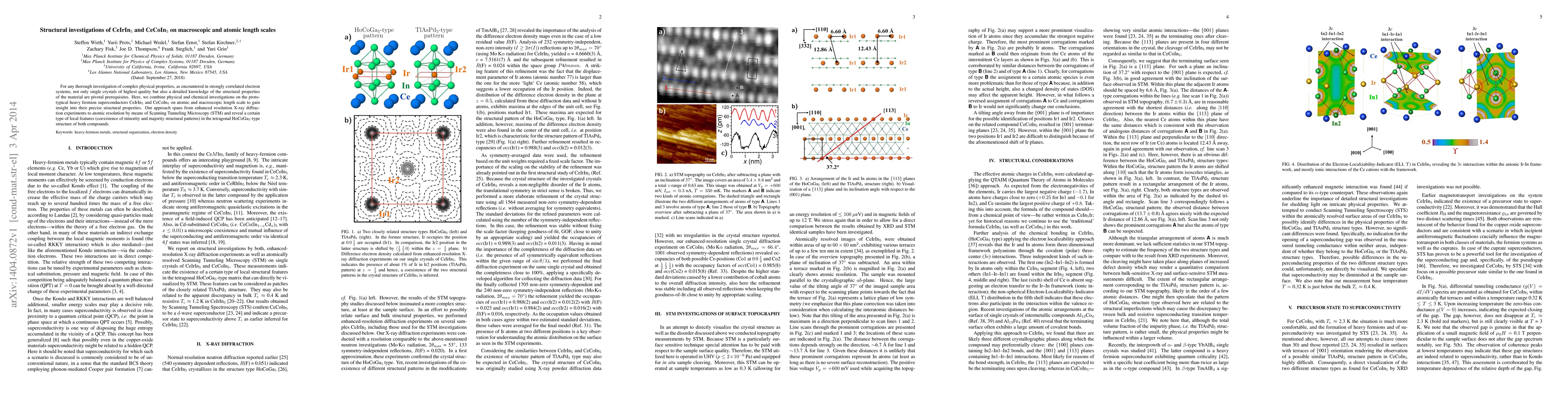 For any thorough investigation of complex physical properties, as encountered in strongly correlated electron systems, not only single crystals of highest quality but also a detailed knowledge of the structural properties of the material are pivotal prerequisites. Here, we combine physical and chemical investigations on the prototypical heavy fermion superconductors CeIrIn${_5}$ and CeCoIn${_5}$ on atomic and macroscopic length scale to gain insight into their precise structural properties. Our approach spans from enhanced resolution X-ray diffraction experiments to atomic resolution by means of Scanning Tunneling Microscopy (STM) and reveal a certain type of local features (coexistence of minority and majority structural patterns) in the tetragonal HoCoGa$_5$-type structure of both compounds.