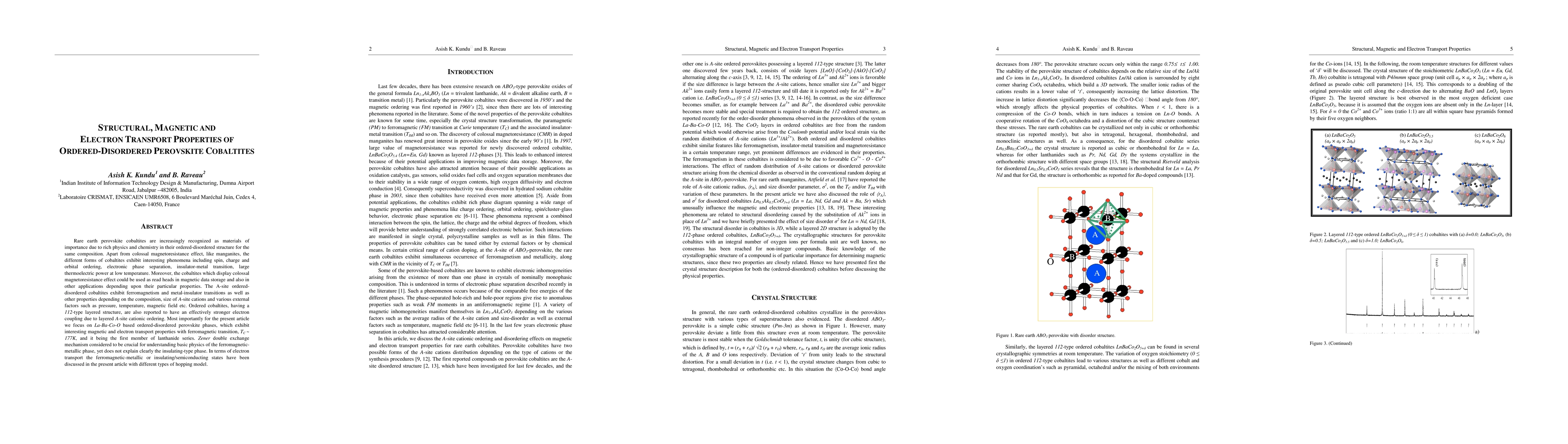 This paper investigates the structural, magnetic, and electron transport properties of ordered-disordered perovskite cobaltites, focusing on La-Ba-Co-O phases. It highlights the material's ferromagnetism, metal-insulator transitions, and the role of Zener double exchange mechanism in understanding its ferromagnetic metallic phase.