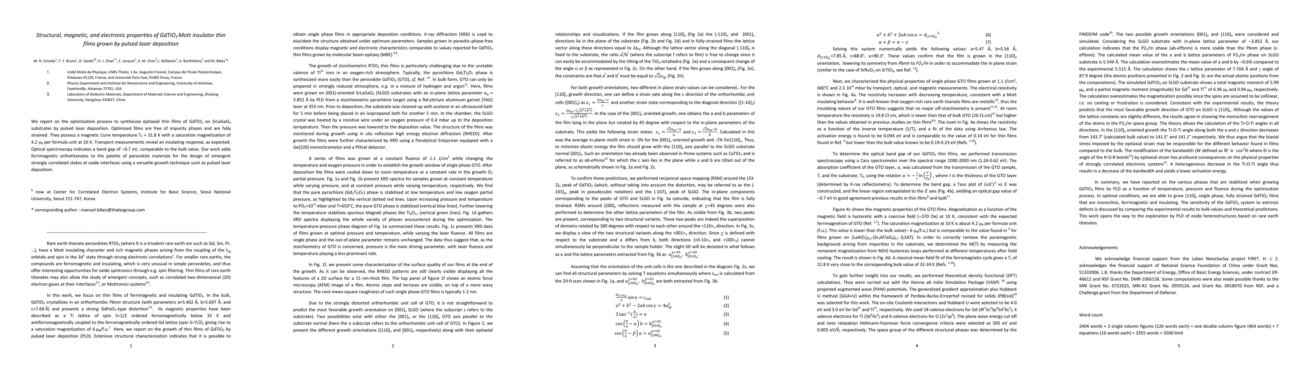 This paper details the synthesis of epitaxial GdTiO3 thin films via pulsed laser deposition, revealing a magnetic Curie temperature of 31.8 K and insulating transport behavior, alongside a band gap of 0.7 eV, positioning ferrimagnetic orthotitanates as promising materials for correlated states in perovskite interfaces.