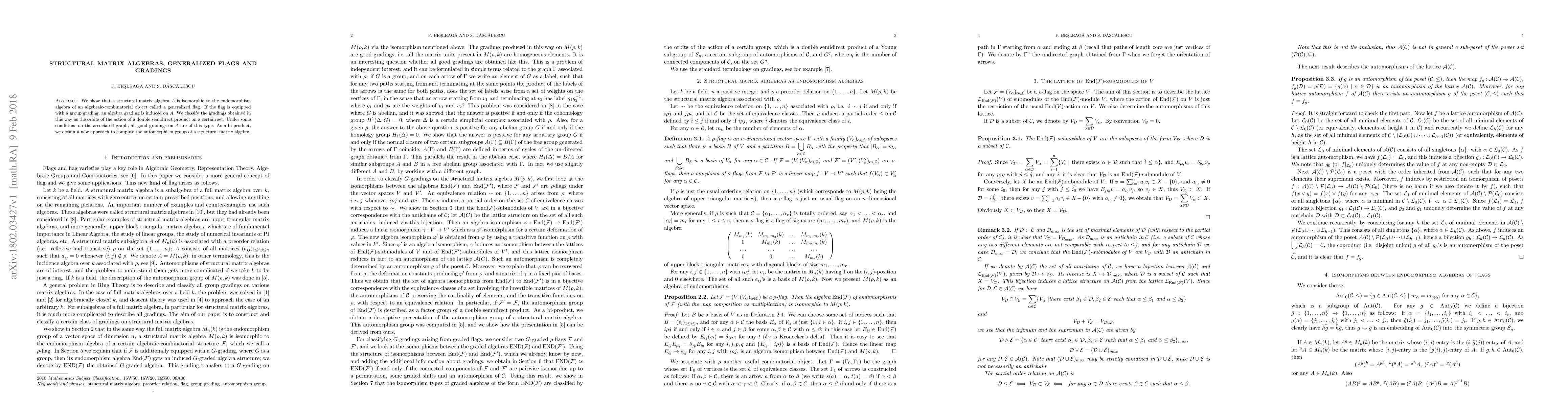 A structural matrix algebra can be represented as an endomorphism algebra of a generalized flag with a group grading, leading to a classification of gradings and a new approach to computing the automorphism group of such algebras.