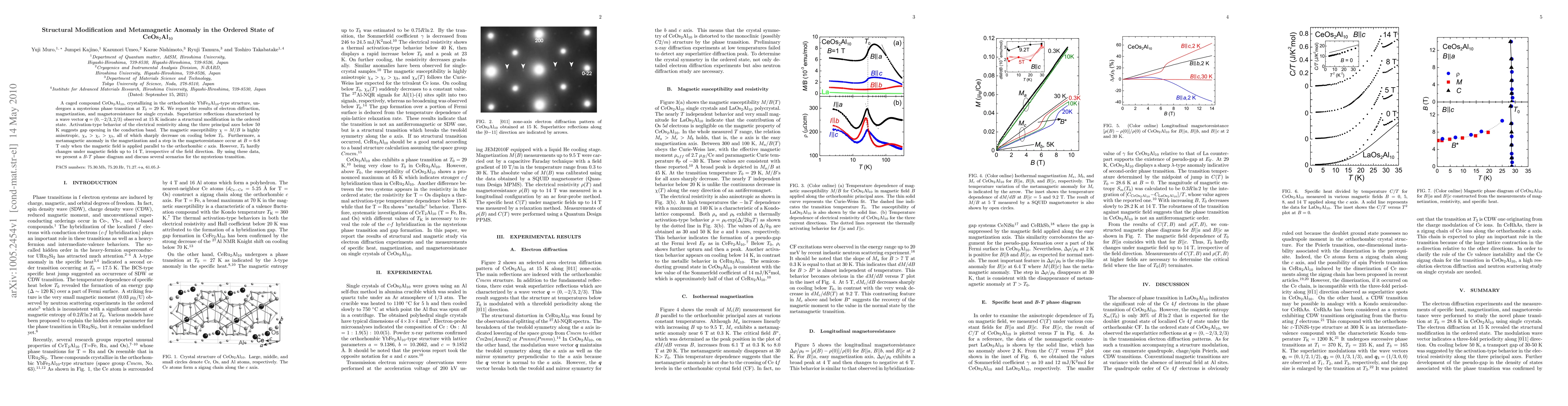 A caged compound CeOs2Al10, crystallizing in the orthorhombic YbFe2Al10-type structure, undergoes a mysterious phase transition at T_0=29 K. We report the results of electron diffraction, magnetization, and magnetoresistance for single crystals. Superlattice reflections characterized by a wave vector q = (0, -2/3, 2/3) observed at 15 K indicate a structural modification in the ordered state. Activation-type behavior of the electrical resistivity along the three principal axes below 50 K suggests gap opening in the conduction band. The magnetic susceptibility \chi = M/B is highly anisotropic, \chi_a>\chi_c>\chi_b, all of which sharply decrease on cooling below T_0. Furthermore, a metamagnetic anomaly in the magnetization and a step in the magnetoresistance occur at B=6-8 T only when the magnetic field is applied parallel to the orthorhombic c axis. However, T_0 hardly changes under magnetic fields up to 14 T, irrespective of the field direction. By using these data, we present a B-T phase diagram and discuss several scenarios for the mysterious transition.