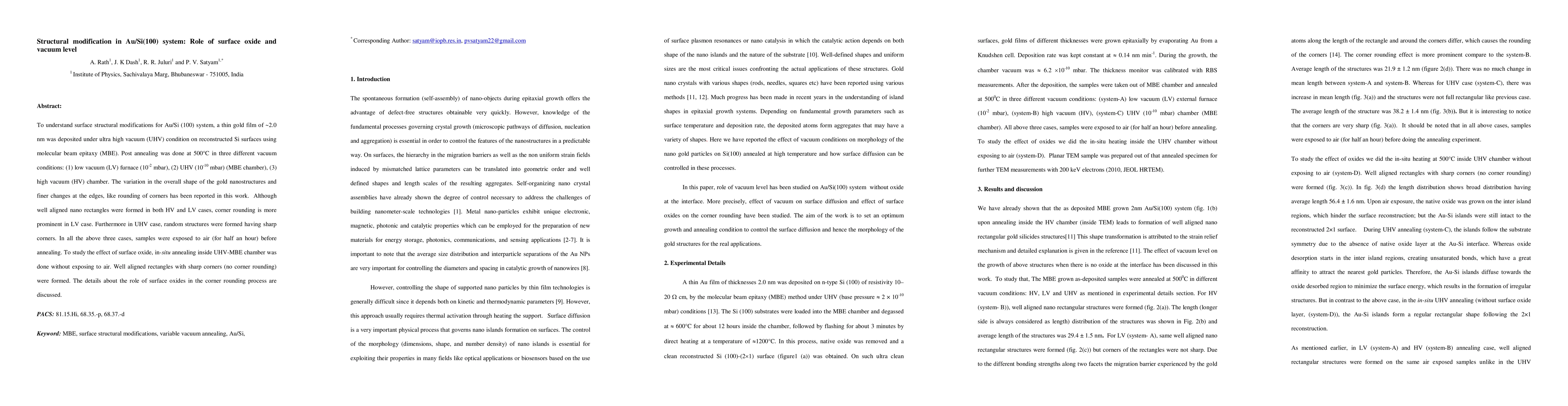 This study investigates the structural modifications in Au/Si (100) thin films under different vacuum conditions, revealing that corner rounding in nanostructures is influenced by surface oxides and vacuum levels. In-situ annealing in UHV without air exposure produced sharp-cornered rectangles, indicating the role of surface oxides in the corner rounding process.