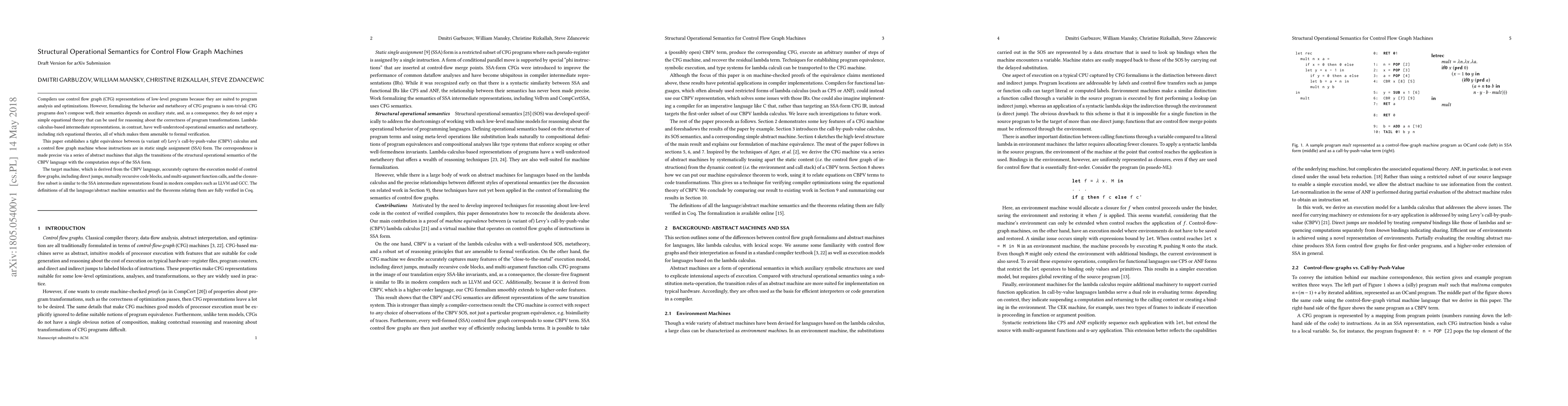 This paper establishes a formal equivalence between a variant of Levy's call-by-push-value (CBPV) calculus and a control flow graph machine in static single assignment (SSA) form, providing a robust operational semantics for CFG programs. The definitions and theorems are verified in Coq, ensuring the correctness of the transformation.