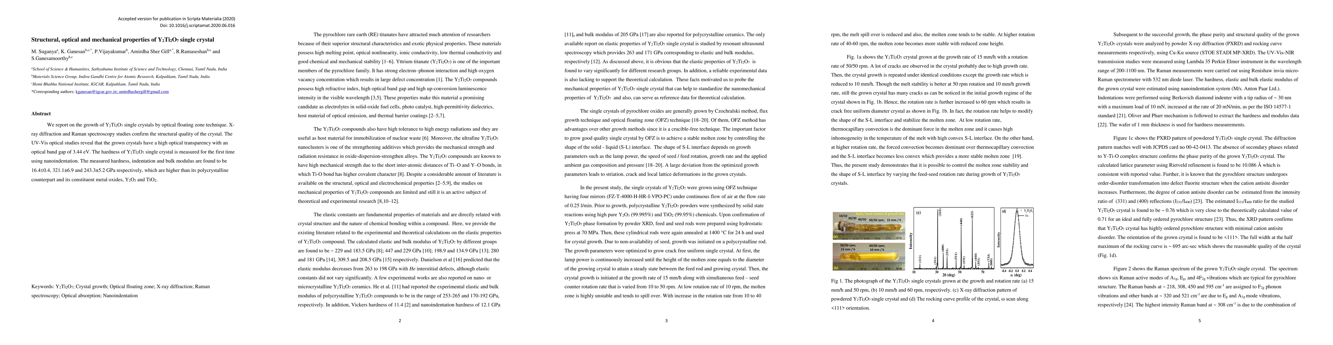 Researchers grew Y2Ti2O7 single crystals using optical floating zone technique, revealing high optical transparency and mechanical properties, including hardness of 16.4 GPa, which surpasses its polycrystalline counterpart and constituent metal oxides.