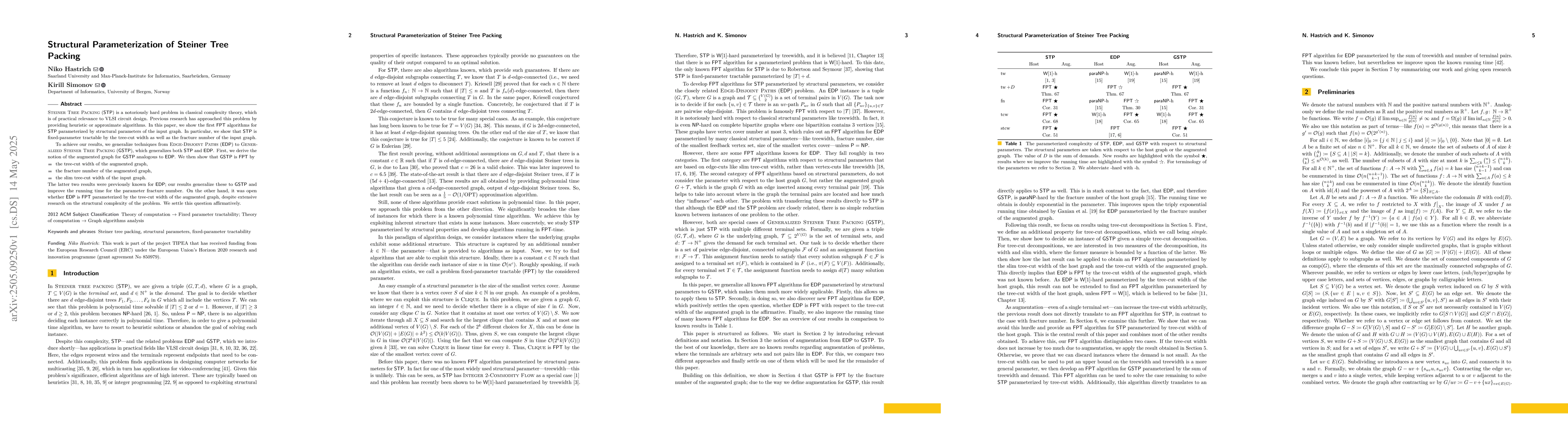 This research provides the first FPT algorithms for Steiner Tree Packing (STP), which is crucial for VLSI circuit design, thereby advancing the understanding of structural complexity in classical complexity theory.