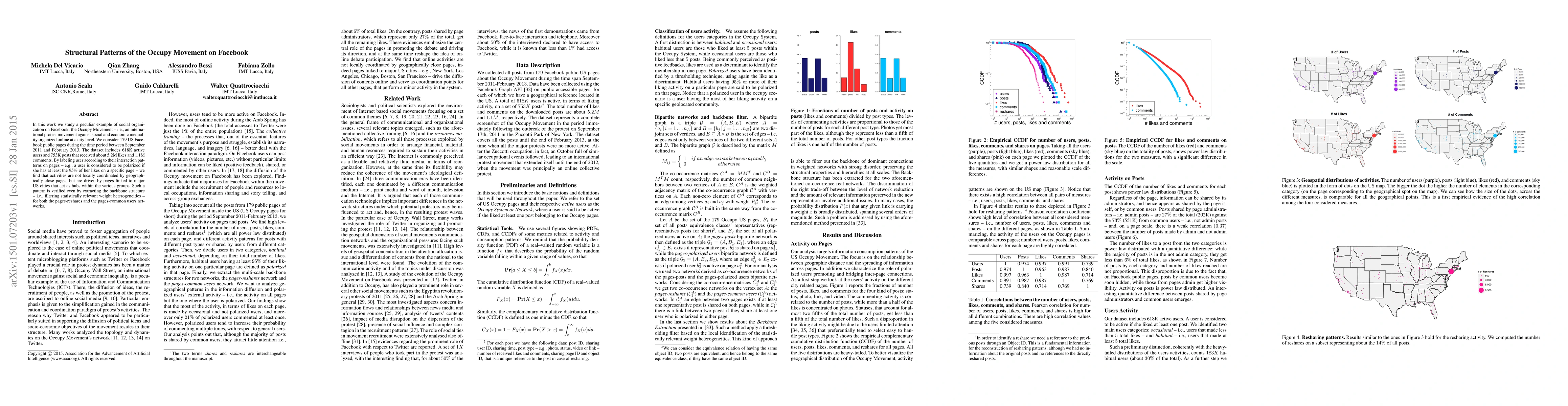 This study examines the structural patterns of the Occupy Movement on Facebook, revealing that despite being organized at city levels, activities are driven by major US cities acting as hubs, rather than by geographically close pages. The analysis of 179 US pages shows that these hubs maintain significant influence even when considering the backbone structure of interactions.