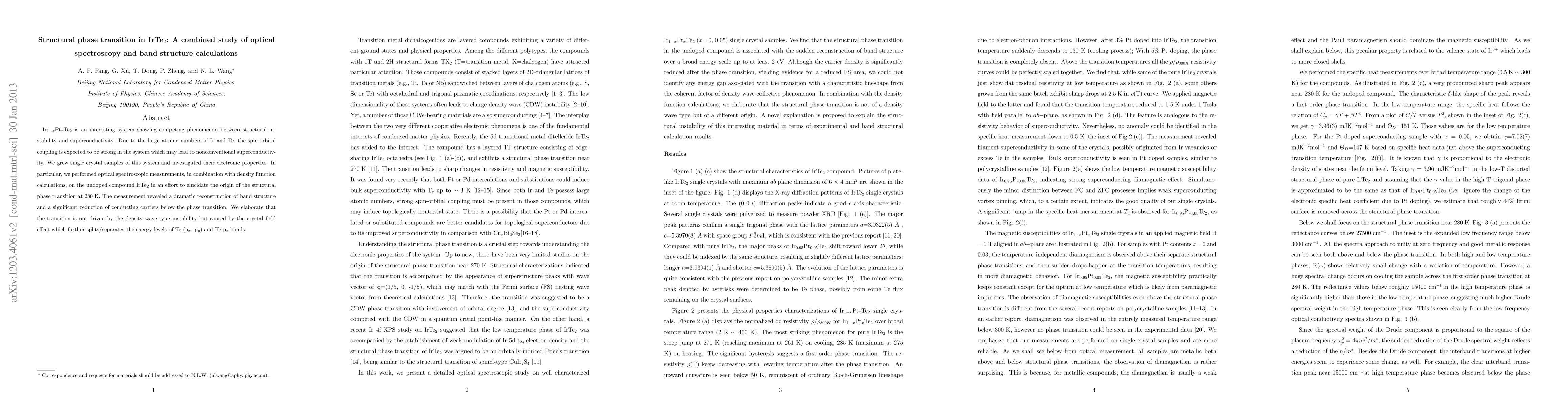 Ir$_{1-x}$Pt$_x$Te$_2$ is an interesting system showing competing phenomenon between structural instability and superconductivity. Due to the large atomic numbers of Ir and Te, the spin-orbital coupling is expected to be strong in the system which may lead to nonconventional superconductivity. We grew single crystal samples of this system and investigated their electronic properties. In particular, we performed optical spectroscopic measurements, in combination with density function calculations, on the undoped compound IrTe$_2$ in an effort to elucidate the origin of the structural phase transition at 280 K. The measurement revealed a dramatic reconstruction of band structure and a significant reduction of conducting carriers below the phase transition. We elaborate that the transition is not driven by the density wave type instability but caused by the crystal field effect which further splits/separates the energy levels of Te (p$_x$, p$_y$) and Te p$_z$ bands.