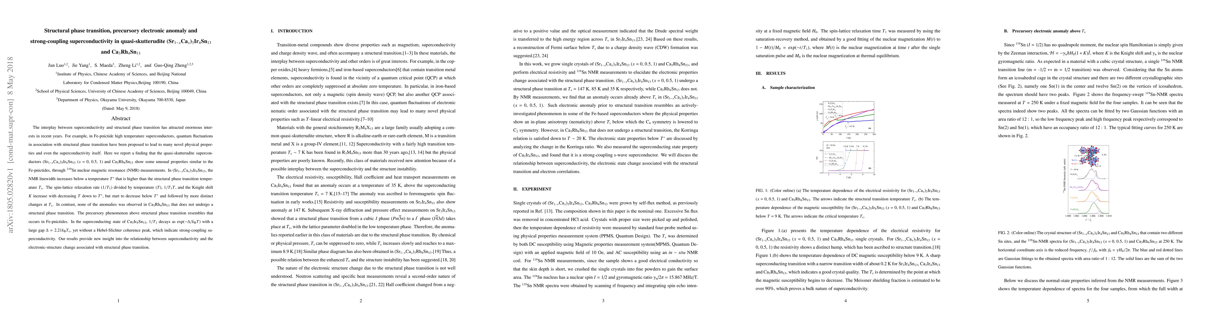 The interplay between superconductivity and structural phase transition has attracted enormous interests in recent years. For example, in Fe-pnictide high temperature superconductors, quantum fluctuations in association with structural phase transition have been proposed to lead to many novel physical properties and even the superconductivity itself. Here we report a finding that the quasi-skutterudite superconductors (Sr$_{1-x}$Ca$_{x}$)$_{3}$Ir$_{4}$Sn$_{13}$ ($x$ = 0, 0.5, 1) and Ca$_{3}$Rh$_{4}$Sn$_{13}$ show some unusual properties similar to the Fe-pnictides, through $^{119}$Sn nuclear magnetic resonance (NMR) measurements. In (Sr$_{1-x}$Ca$_{x}$)$_{3}$Ir$_{4}$Sn$_{13}$, the NMR linewidth increases below a temperature $T^*$ that is higher than the structural phase transition temperature $T_{\rm s}$. The spin-lattice relaxation rate ($1/T_1$) divided by temperature ($T$), $1/T_1T$, and the Knight shift $K$ increase with decreasing $T$ down to $T^*$, but start to decrease below $T^*$ and followed by more distinct changes at $T_{\rm s}$. In contrast, none of the anomalies was observed in Ca$_{3}$Rh$_{4}$Sn$_{13}$ that does not undergo a structural phase transition. The precursory phenomenon above structural phase transition resembles that occurs in Fe-pnictides. In the superconducting state of Ca$_{3}$Ir$_{4}$Sn$_{13}$, $1/T_{1}$ decays as ${\rm exp}(-\Delta/k_{\rm B}T)$ with a large gap $\Delta = 2.21 k_{\rm B}T_{\rm c}$, yet without a Hebel-Slichter coherence peak, which indicate strong-coupling superconductivity. Our results provide new insight into the relationship between superconductivity and the electronic-structure change associated with structural phase transition.