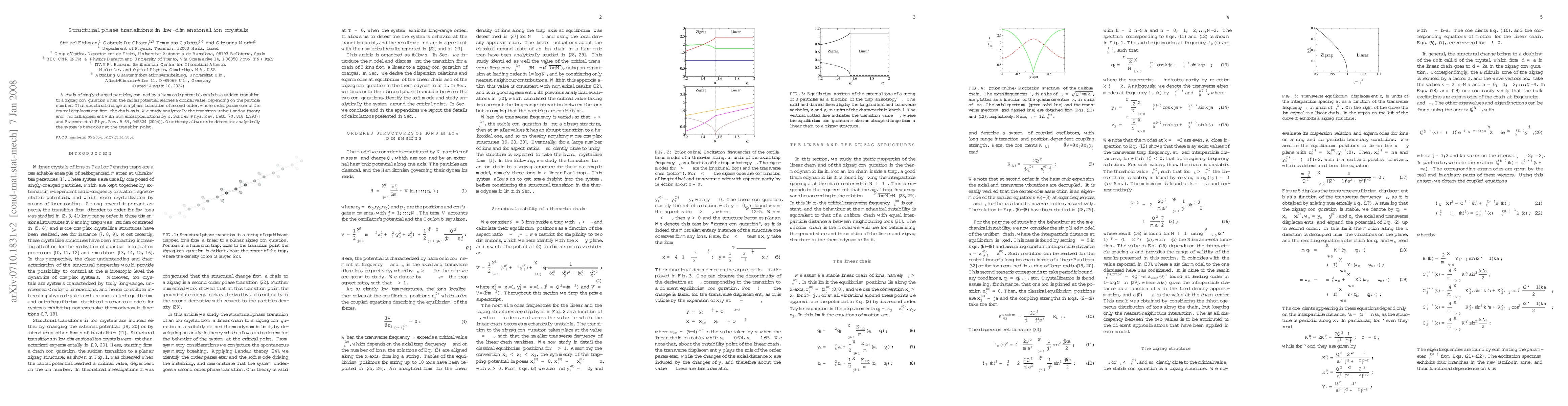 A chain of singly-charged particles, confined by a harmonic potential, exhibits a sudden transition to a zigzag configuration when the radial potential reaches a critical value, depending on the particle number. This structural change is a phase transition of second order, whose order parameter is the crystal displacement from the chain axis. We study analytically the transition using Landau theory and find full agreement with numerical predictions by [J. Schiffer Phys. Rev. Lett. 70, 818 (1993)] and [Piacente et al Phys. Rev. B 69, 045324 (2004)]. Our theory allows us to determine analytically the system's behaviour at the transition point.