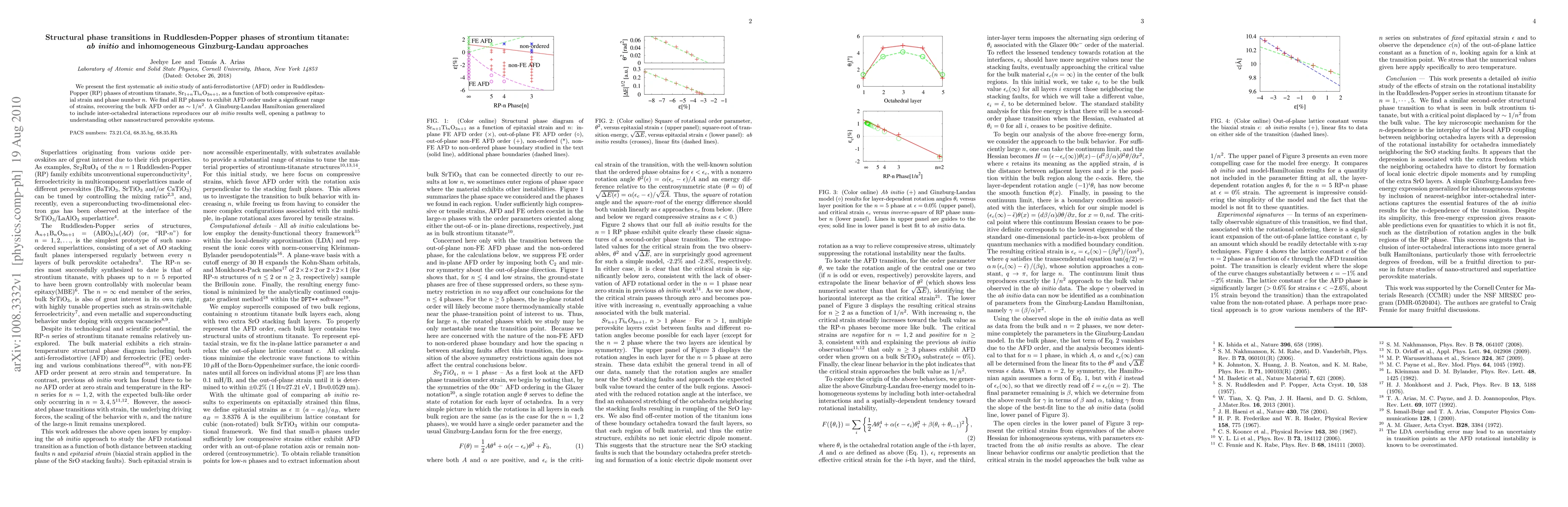 Researchers studied phase transitions in strontium titanate under varying strains, finding anti-ferrodistortive order is common across Ruddlesden-Popper phases, with a pattern that recovers as 1/n^2. A Ginzburg-Landau Hamiltonian also reproduces the findings, offering insights into nanostructured perovskite systems.