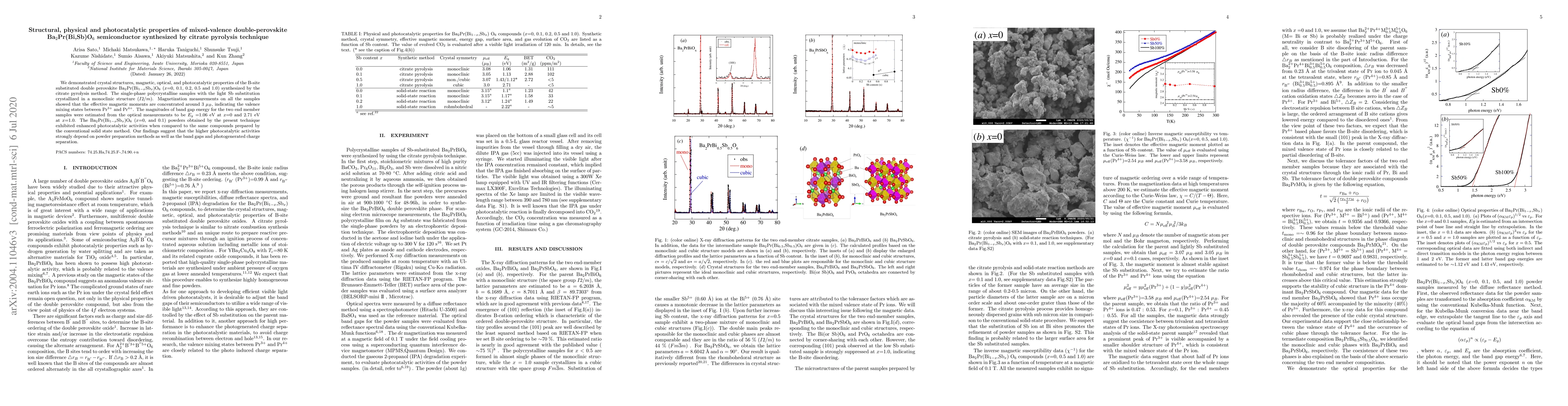 This paper investigates the structural, magnetic, optical, and photocatalytic properties of mixed-valence double perovskite Ba$_{2}$Pr(Bi$_{1-x}$Sb$_{x}$)O$_{6}$ synthesized via citrate pyrolysis. The study reveals enhanced photocatalytic activity in samples prepared by this method compared to conventional solid-state synthesis, suggesting the importance of preparation technique, band gaps, and charge separation.