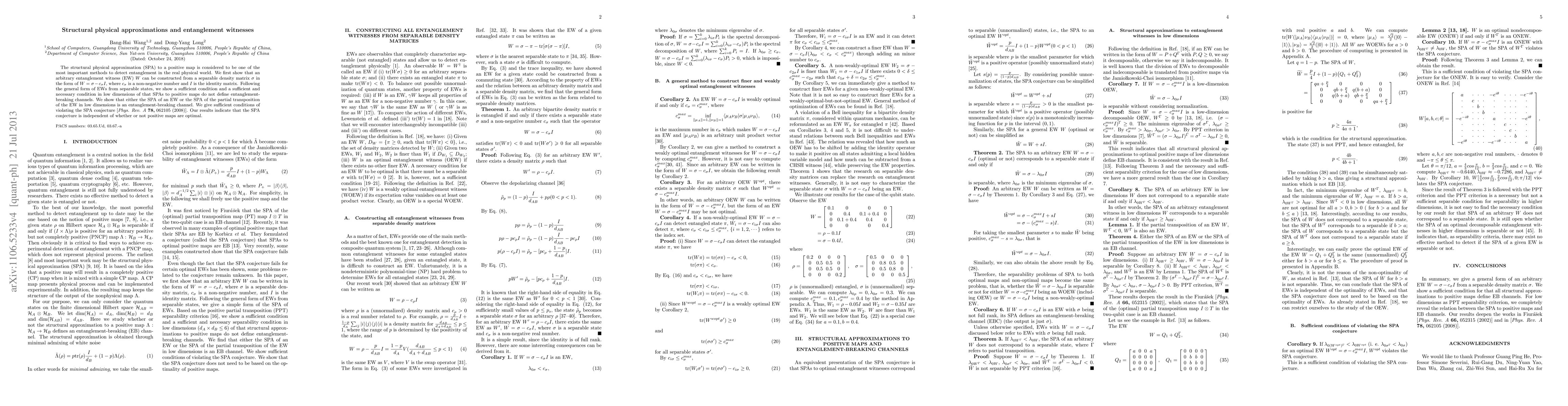This paper explores the structural physical approximation (SPA) method for detecting entanglement, showing that any entanglement witness can be derived from a separable density matrix. It provides conditions under which SPAs do not define entanglement-breaking channels, and concludes that SPAs either of an entanglement witness or its partial transpose are entanglement-breaking in low dimensions, supporting the SPA conjecture.