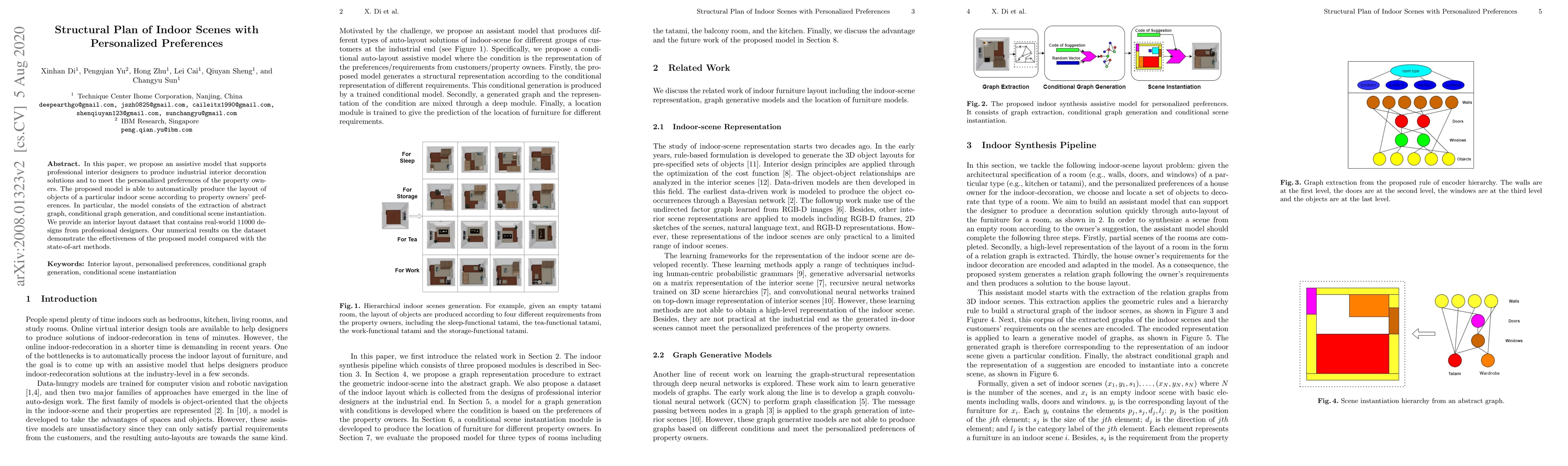 This paper proposes an assistive model that helps interior designers create personalized indoor decoration solutions based on property owners' preferences, using a dataset of 11,000 professional designs.