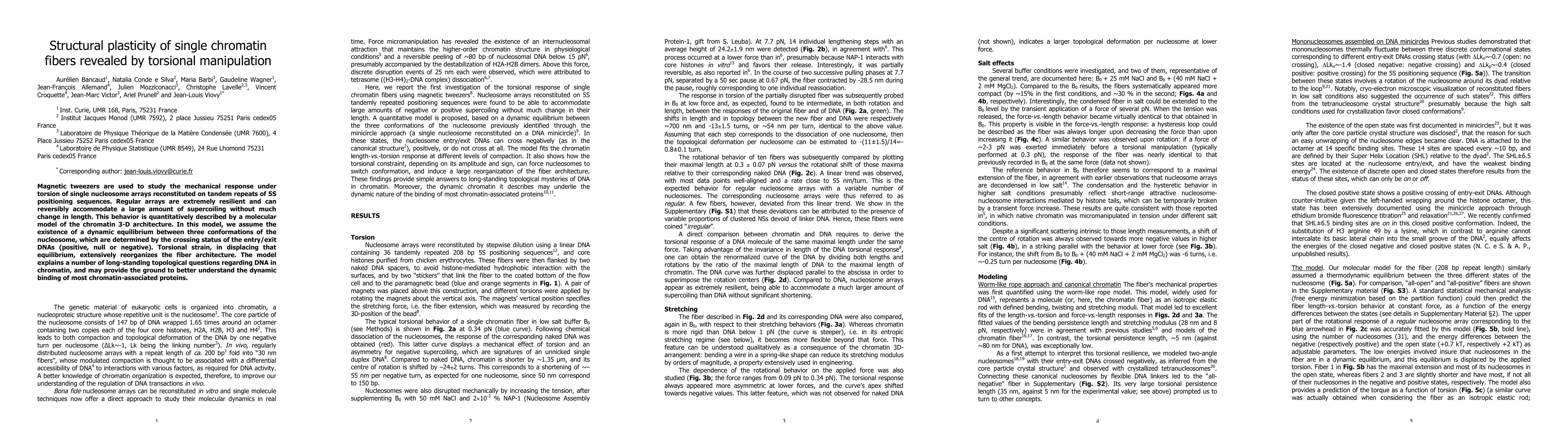 This study uses magnetic tweezers to investigate the torsional response of single chromatin fibers, revealing that nucleosome arrays can accommodate significant supercoiling without length changes. The research proposes a model describing chromatin's 3-D architecture and dynamic equilibrium among nucleosome conformations, explaining long-standing topological questions and offering insights into chromatin-protein interactions.