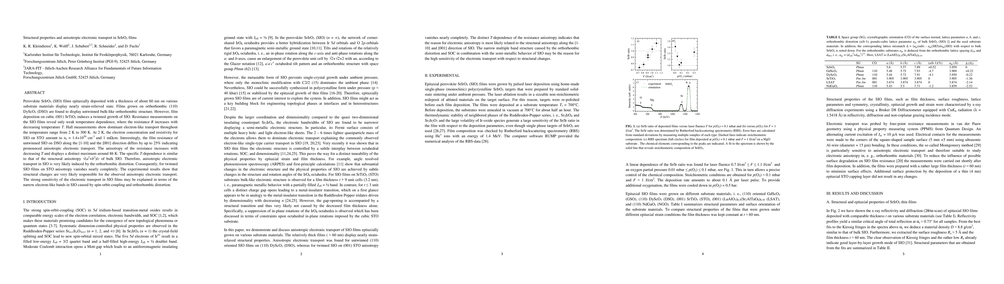 Perovskite SrIrO3 (SIO) films epitaxially deposited with a thickness of about 60 nm on various substrate materials display nearly strain-relieved state. Films grown on orthorhombic (110) DyScO3 (DSO) are found to display untwinned bulk-like orthorhombic structure. However, film deposition on cubic (001) SrTiO3 induces a twinned growth of SIO. Resistance measurements on the SIO films reveal only weak temperature dependence, where the resistance R increases with decreasing temperature T. Hall measurements show dominant electron-like transport throughout the temperature range from 2 K to 300 K. At 2 K, the electron concentration and resistivity for SIO on STO amount to ne = 1.4*10^20 cm-3 and 1 mohmcm. Interestingly, the film resistance of untwinned SIO on DSO along the [1-10] and the [001] direction differs by up to 25% indicating pronounced anisotropic electronic transport. The anisotropy of the resistance increases with decreasing T and displays a distinct maximum around 86 K. The specific T-dependence is similar to that of the structural anisotropy sqrt(a2+b2)/c of bulk SIO. Therefore, anisotropic electronic transport in SIO is very likely induced by the orthorhombic distortion. Consequently, for twinned SIO films on STO anisotropy vanishes nearly completely. The experimental results show that structural changes are very likely responsible for the observed anisotropic electronic transport. The strong sensitivity of the electronic transport in SIO films may be explained in terms of the narrow electron-like bands in SIO caused by spin-orbit-coupling and orthorhombic distortion.