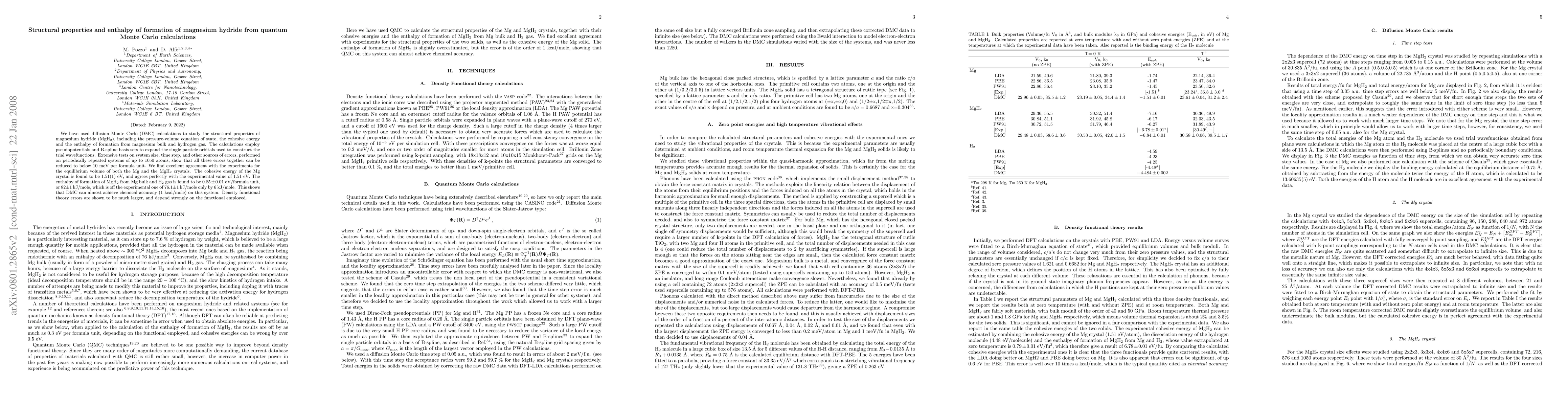 We have used diffusion Monte Carlo (DMC) calculations to study the structural properties of magnesium hydride (MgH$_2$), including the pressure-volume equation of state, the cohesive energy and the enthalpy of formation from magnesium bulk and hydrogen gas. The calculations employ pseudopotentials and B-spline basis sets to expand the single particle orbitals used to construct the trial wavefunctions. Extensive tests on system size, time step, and other sources of errors, performed on periodically repeated systems of up to 1050 atoms, show that all these errors together can be reduced to below 10 meV per formula unit. We find excellent agreement with the experiments for the equilibrium volume of both the Mg and the MgH$_2$ crystals. The cohesive energy of the Mg crystal is found to be 1.51(1) eV, and agrees perfectly with the experimental value of 1.51 eV. The enthalpy of formation of MgH$_2$ from Mg bulk and H$_2$ gas is found to be $0.85 \pm 0.01$ eV/formula unit, or $82 \pm 1$ kJ/mole, which is off the experimental one of $76.1 \pm 1$ kJ/mole only by 6 kJ/mole. This shows that DMC can almost achieve chemical accuracy (1 kcal/mole) on this system. Density functional theory errors are shown to be much larger, and depend strongly on the functional employed.