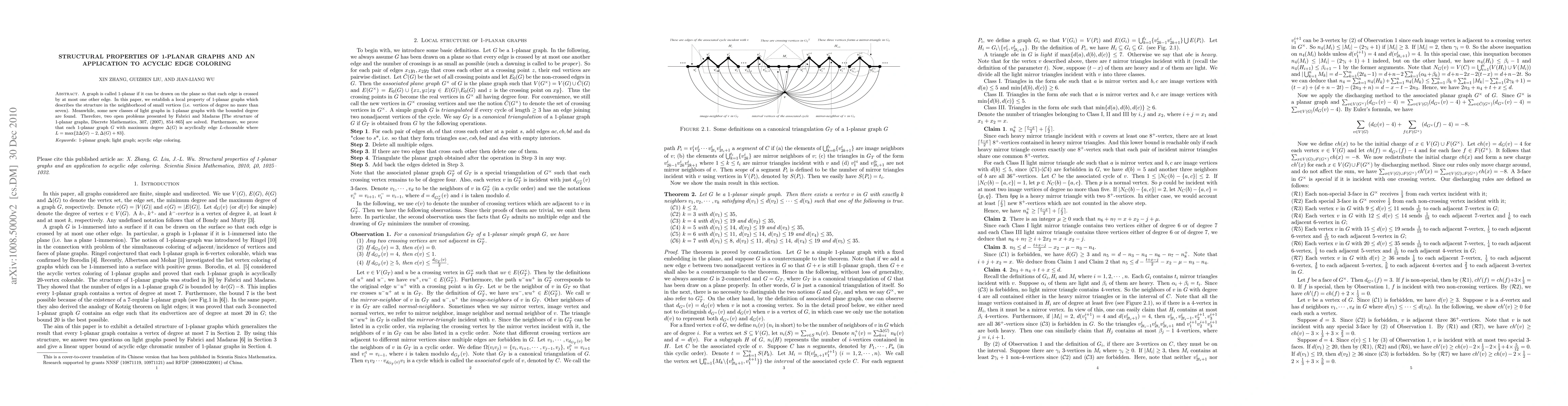 A graph is called 1-planar if it can be drawn on the plane so that each edge is crossed by at most one other edge. In this paper, we establish a local property of 1-planar graphs which describes the structure in the neighborhood of small vertices (i.e. vertices of degree no more than seven). Meanwhile, some new classes of light graphs in 1-planar graphs with the bounded degree are found. Therefore, two open problems presented by Fabrici and Madaras [The structure of 1-planar graphs, Discrete Mathematics, 307, (2007), 854-865] are solved. Furthermore, we prove that each 1-planar graph $G$ with maximum degree $\Delta(G)$ is acyclically edge $L$-choosable where $L=\max\{2\Delta(G)-2,\Delta(G)+83\}$.
