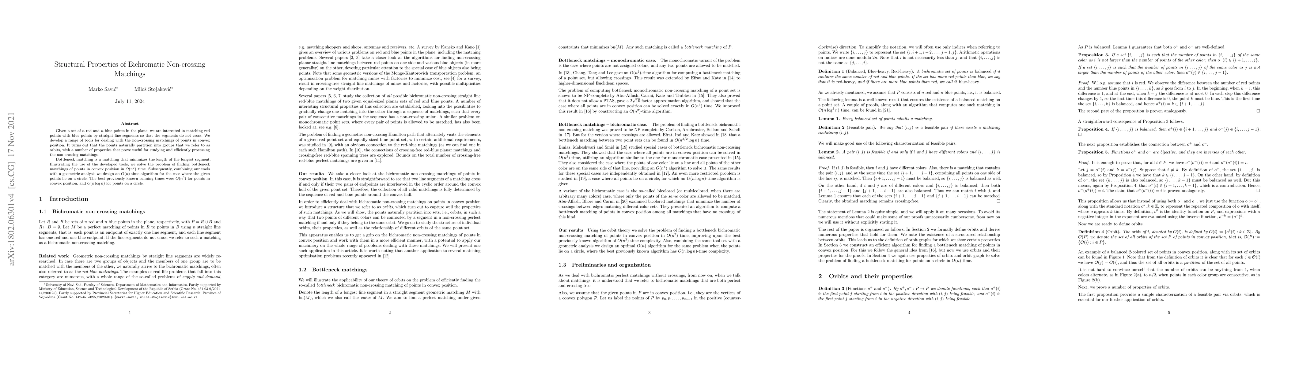 Given a set of $n$ red and $n$ blue points in the plane, we are interested in matching red points with blue points by straight line segments so that the segments do not cross. We develop a range of tools for dealing with the non-crossing matchings of points in convex position. It turns out that the points naturally partition into groups that we refer to as orbits, with a number of properties that prove useful for studying and efficiently processing the non-crossing matchings. Bottleneck matching is such a matching that minimizes the length of the longest segment. Illustrating the use of the developed tools, we solve the problem of finding bottleneck matchings of points in convex position in $O(n^2)$ time. Subsequently, combining our tools with a geometric analysis we design an $O(n)$-time algorithm for the case where the given points lie on a circle. Previously best known results were $O(n^3)$ for points in convex position, and $O(n \log n$) for points on a circle.
