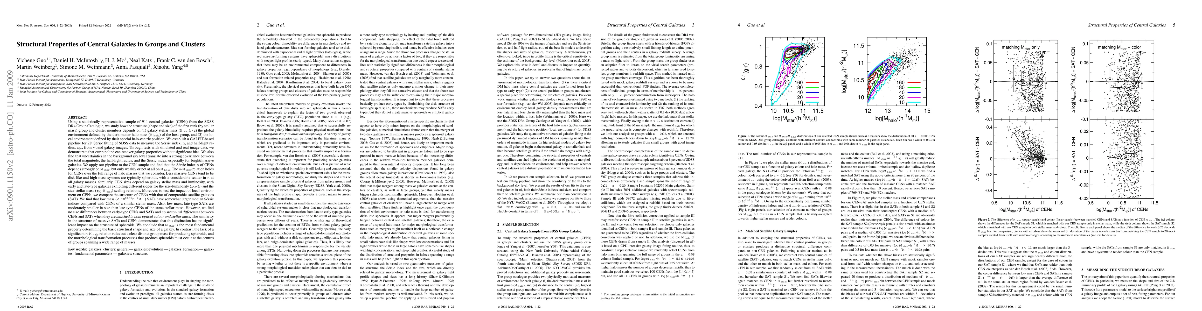 The study of 911 central galaxies in groups and clusters reveals that stellar mass is the most fundamental property determining a galaxy's basic structure, with no clear relation to dark matter halo mass or position.