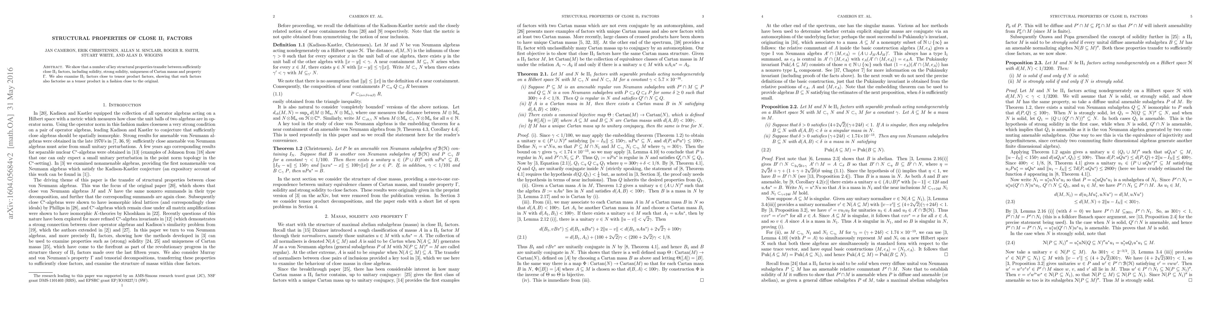 Researchers found that structural properties of II$_1$ factors, such as solidity and uniqueness of Cartan masas, transfer between close factors, similar to tensor product factors.