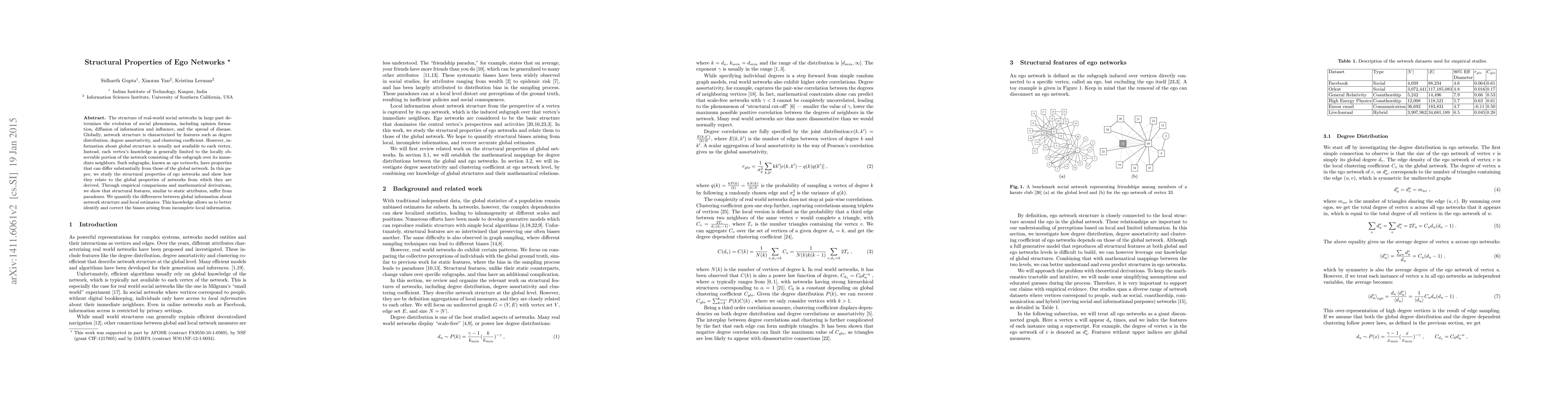 This paper investigates the structural properties of ego networks, comparing them to the global network properties they represent. It highlights how local information in ego networks can lead to paradoxical differences and biases, providing insights to better understand and correct these discrepancies.
