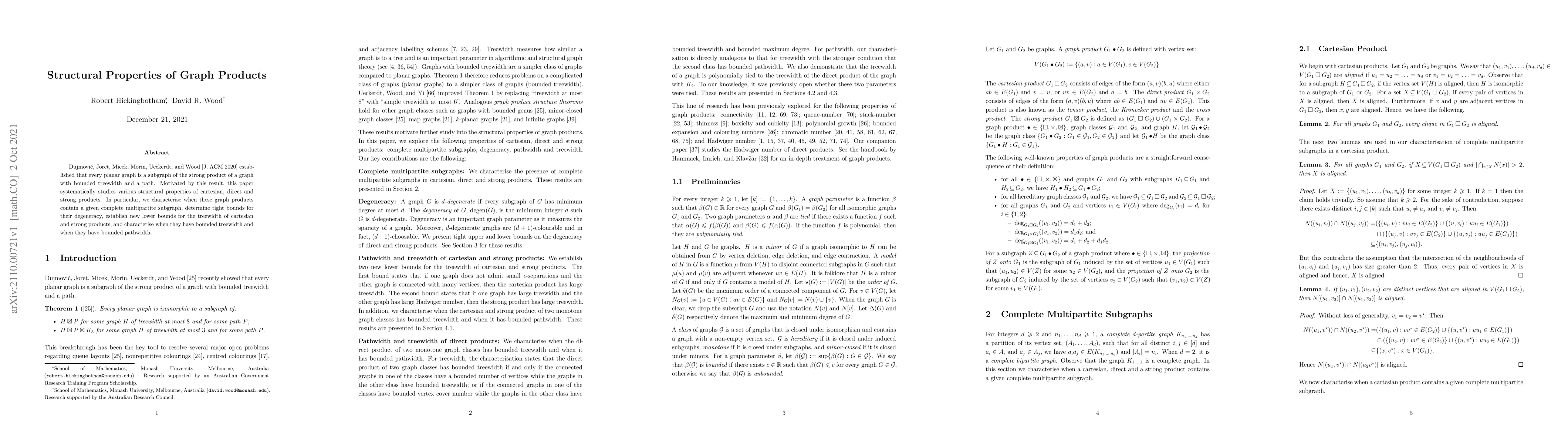 This paper studies structural properties of graph products, including subgraphs, degeneracy, treewidth, and pathwidth, providing new insights into their characteristics.