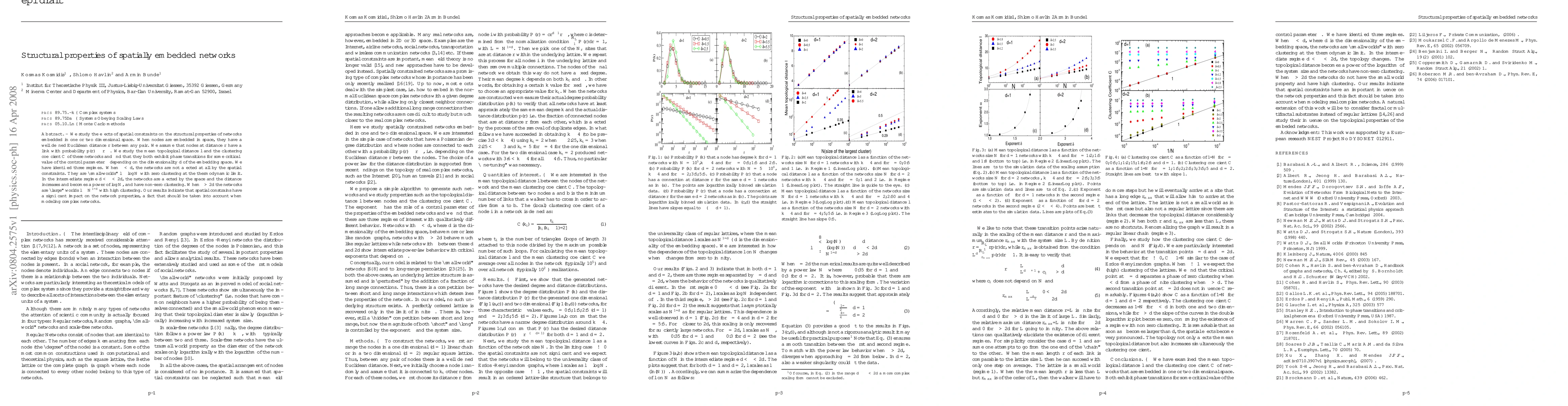 networks embedded in one or two dimensional space. When nodes are embedded in