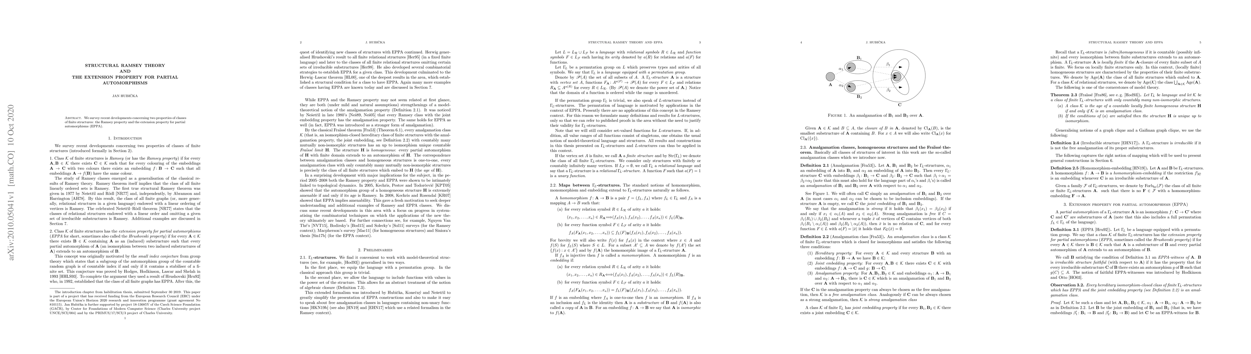 Summary: This paper surveys recent advancements in structural Ramsey theory, focusing on the Ramsey property and the extension property for partial automorphisms (EPPA) in finite structures, highlighting their significance and interconnections.