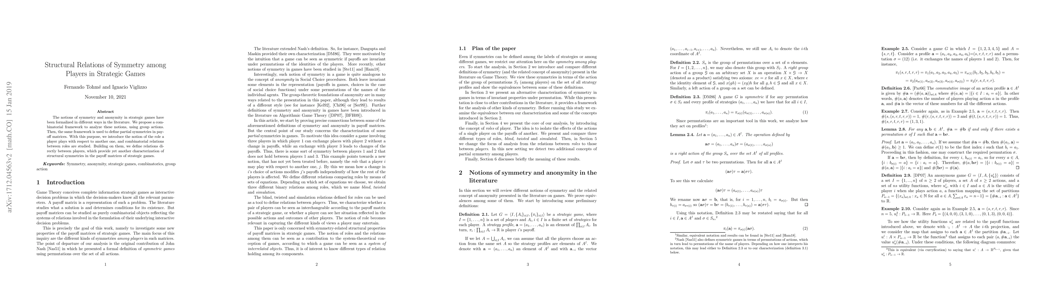 Researchers introduce a combinatorial framework to analyze symmetry in strategic games, exploring how players relate to each other based on their roles and direct connections. This framework provides new characterizations of structural symmetries in game payoffs.