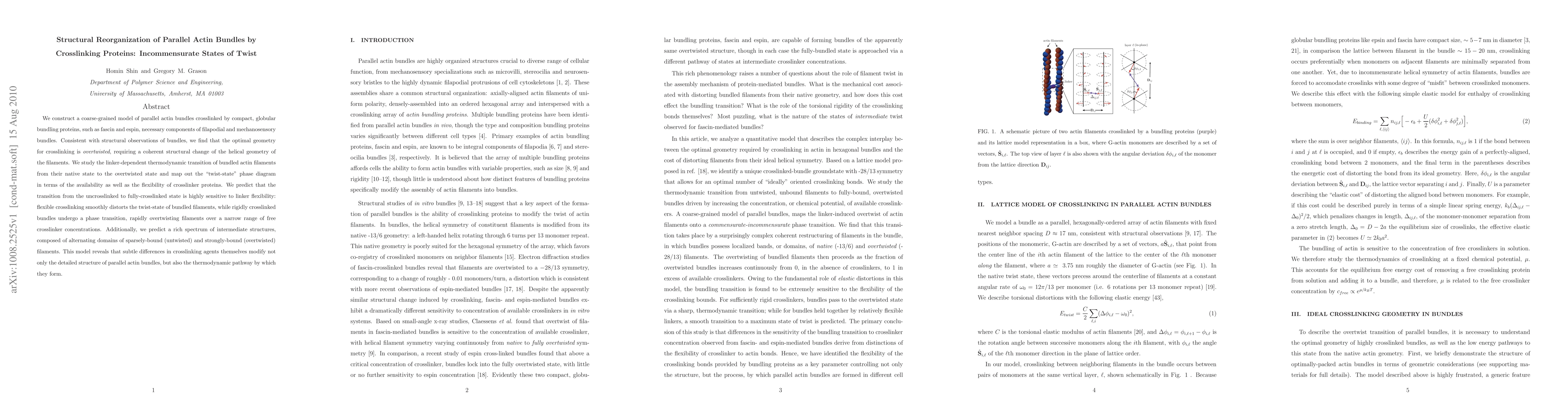This paper constructs a model to study how actin bundles reorganize under crosslinking by proteins like fascin and espin, finding that optimal crosslinking leads to an overtwisted geometry. It predicts that flexible crosslinkers gradually alter bundle twist, while rigid crosslinkers cause a rapid phase transition, revealing a spectrum of intermediate structures and highlighting the impact of crosslinker flexibility on bundle formation pathways.