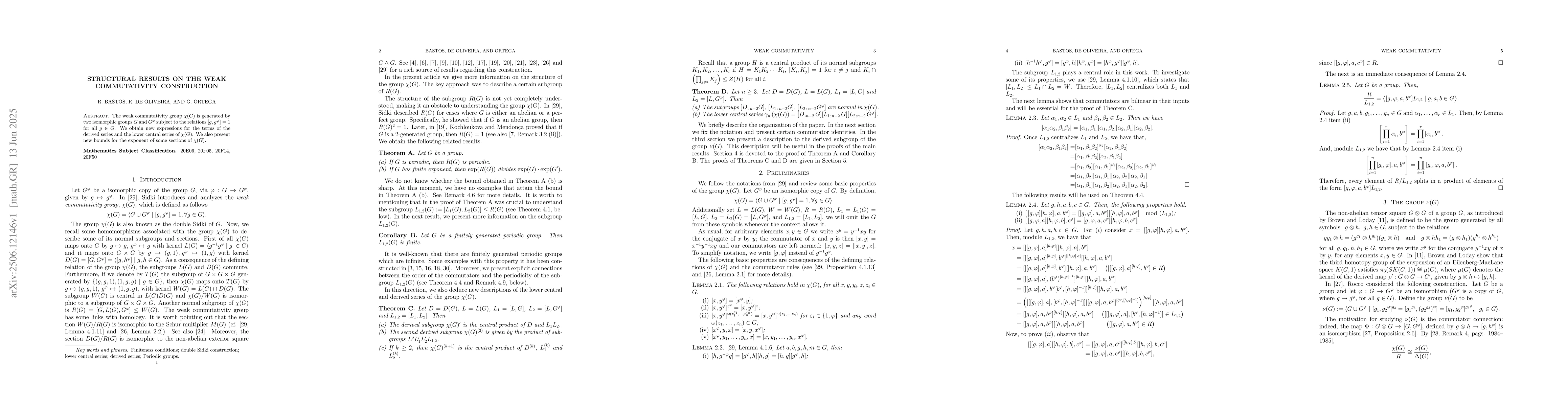 The weak commutativity group $\chi(G)$ is generated by two isomorphic groups $G$ and $G^{\varphi }$ subject to the relations $[g,g^{\varphi}]=1$ for all $g \in G$. We obtain new expressions for the terms of the derived series and the lower central series of $\chi(G)$. We also present new bounds for the exponent of some sections of $\chi(G)$.