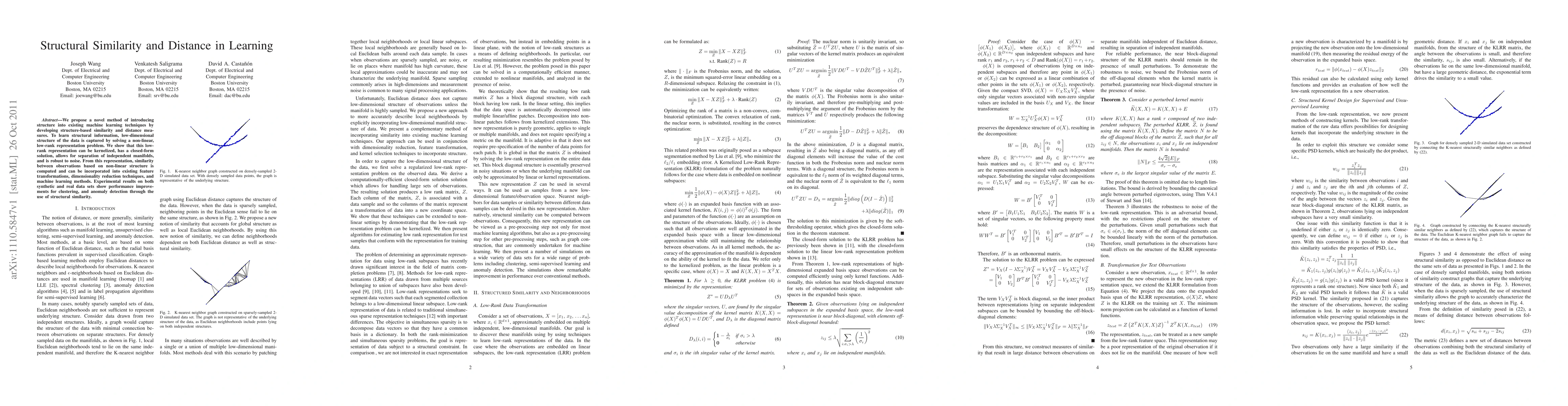 This paper proposes a method to enhance machine learning by introducing structure through novel similarity and distance measures based on low-rank representations. The approach captures data's low-dimensional structure, enabling improved clustering and anomaly detection, as demonstrated by experimental results.