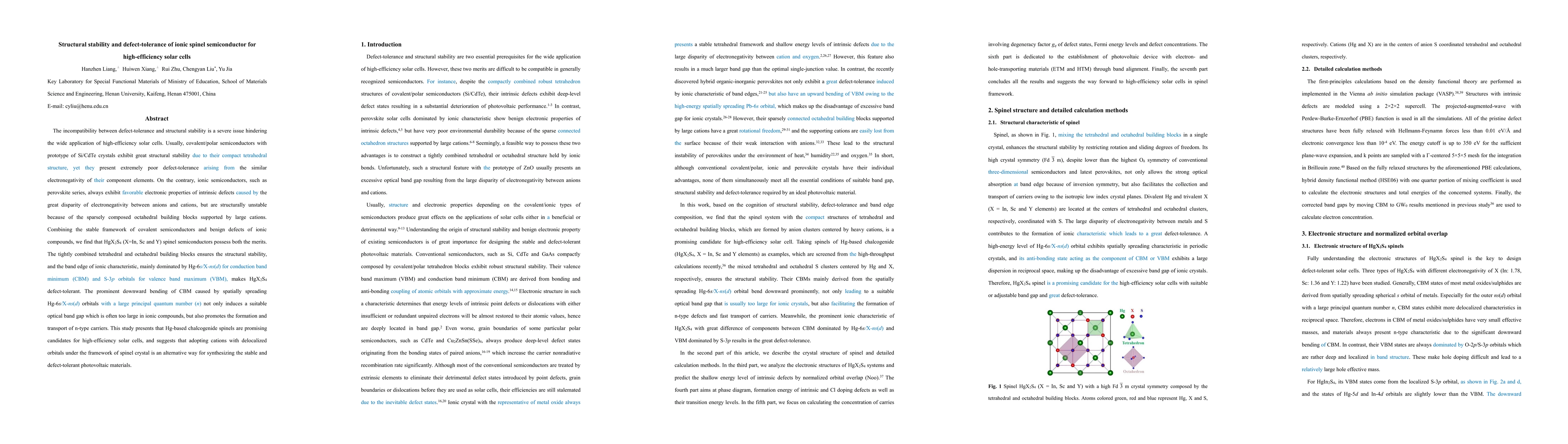 Researchers found that HgX2S4 spinel semiconductors have both structural stability and defect tolerance, making them promising candidates for high-efficiency solar cells.