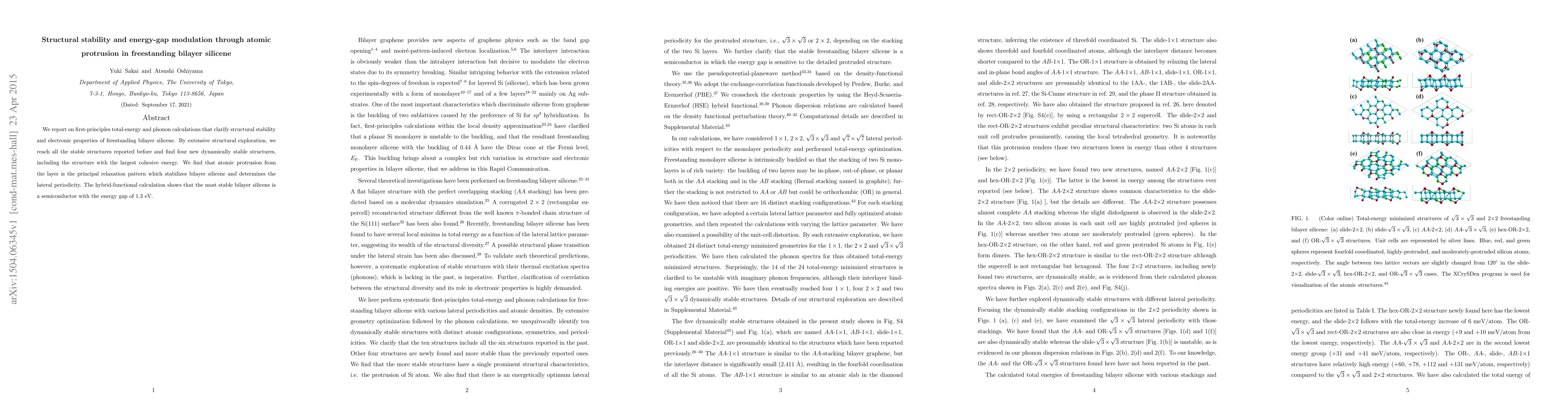 This study identifies new dynamically stable structures of freestanding bilayer silicene, revealing that atomic protrusion enhances structural stability and modulates the energy gap. The most stable configuration exhibits a semiconductor behavior with an energy gap of 1.3 eV.