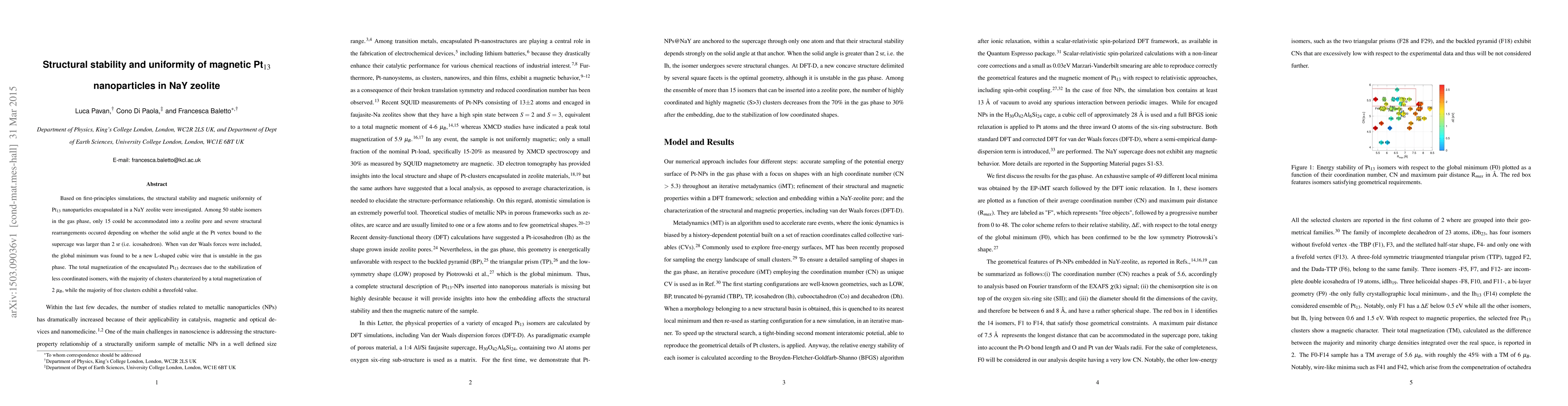 Based on first-principles simulations, the structural stability and magnetic uniformity of Pt13 nanoparticles encapsulated in a NaY zeolite were investigated. Among 50 stable isomers in the gas phase, only 15 could be accommodated into a zeolite pore and severe structural rearrangements occured depending on whether the solid angle at the Pt vertex bound to the supercage was larger than 2 sr (i.e. icosahedron). When van der Waals forces were included, the global minimum was found to be a new L-shaped cubic wire that is unstable in the gas phase. The total magnetization of the encapsulated Pt13 decreases due to the stabilization of less coordinated isomers, with the majority of clusters charaterized by a total magnetization of 2 {\mu}B, while the majority of free clusters exhibit a threefold value.