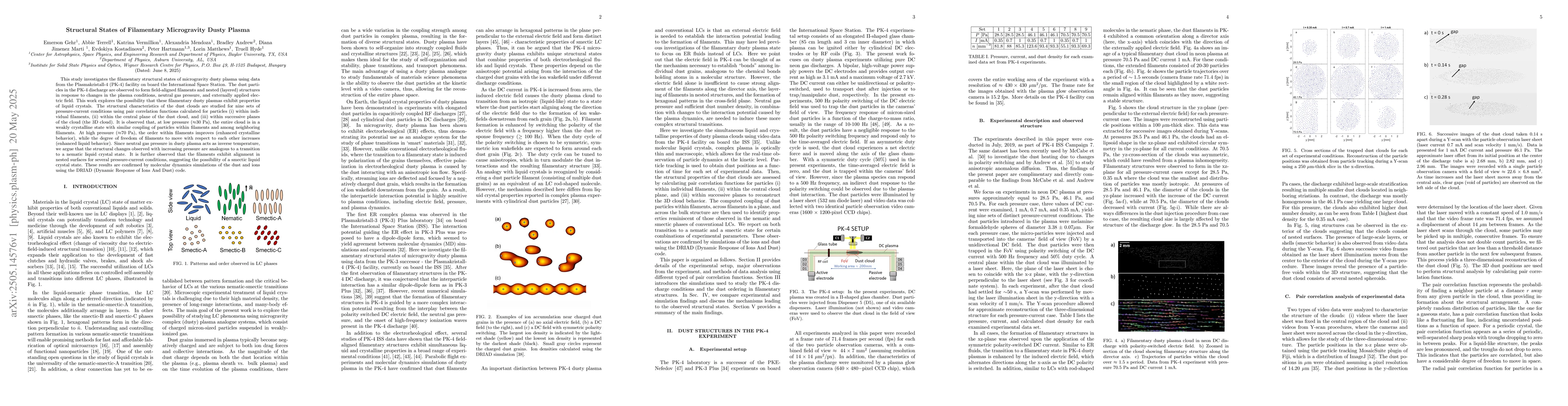 The paper presents an in-depth analysis of dusty plasma structural states using pair correlation functions and molecular dynamics simulations, providing insights into liquid crystal analogs in microgravity.