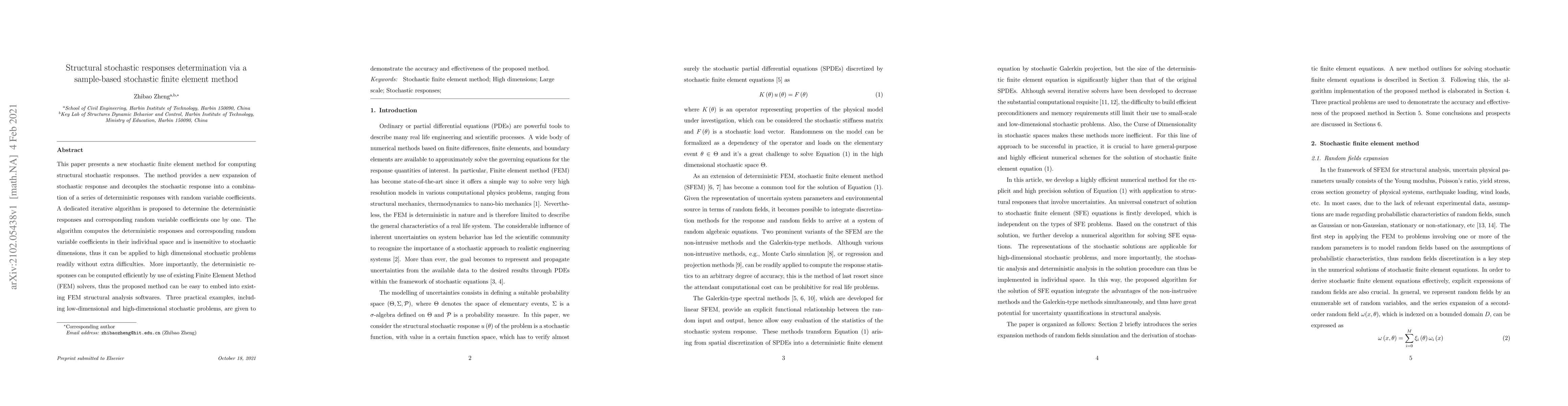 This paper presents a new stochastic finite element method for computing structural stochastic responses. The method provides a new expansion of stochastic response and decouples the stochastic response into a combination of a series of deterministic responses with random variable coefficients. A dedicated iterative algorithm is proposed to determine the deterministic responses and corresponding random variable coefficients one by one. The algorithm computes the deterministic responses and corresponding random variable coefficients in their individual space and is insensitive to stochastic dimensions, thus it can be applied to high dimensional stochastic problems readily without extra difficulties. More importantly, the deterministic responses can be computed efficiently by use of existing Finite Element Method (FEM) solvers, thus the proposed method can be easy to embed into existing FEM structural analysis softwares. Three practical examples, including low-dimensional and high-dimensional stochastic problems, are given to demonstrate the accuracy and effectiveness of the proposed method.