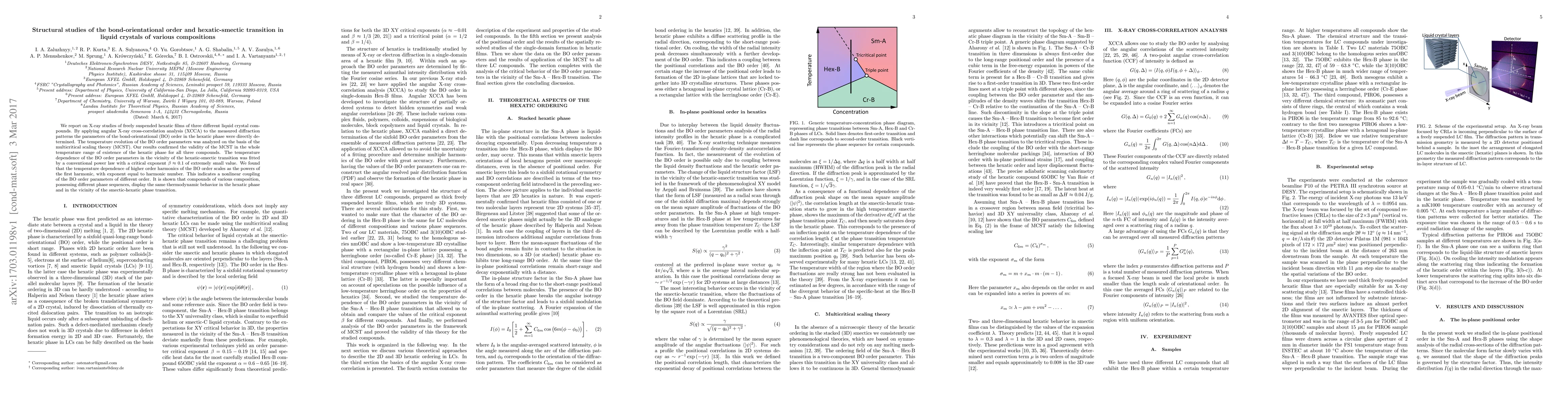 We report on X-ray studies of freely suspended hexatic films of three different liquid crystal compounds. By applying angular X-ray cross-correlation analysis (XCCA) to the measured diffraction patterns the parameters of the bond-orientational (BO) order in the hexatic phase were directly determined. The temperature evolution of the BO order parameters was analyzed on the basis of the multicritical scaling theory (MCST). Our results confirmed the validity of the MCST in the whole temperature range of existence of the hexatic phase for all three compounds. The temperature dependence of the BO order parameters in the vicinity of the hexatic-smectic transition was fitted by a conventional power law with a critical exponent $\beta\approx0.1$ of extremely small value. We found that the temperature dependence of higher order harmonics of the BO order scales as the powers of the first harmonic, with exponent equal to harmonic number. This indicates a nonlinear coupling of the BO order parameters of different order. It is shown that compounds of various composition, possessing different phase sequences, display the same thermodynamic behavior in the hexatic phase and in the vicinity of the smectic-hexatic phase transition.