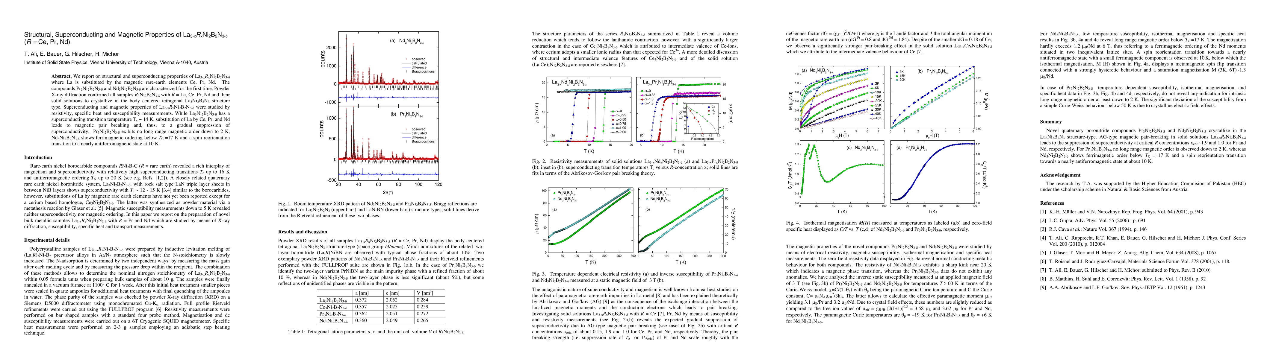This study investigates the structural, superconducting, and magnetic properties of La(3-x)R(x)Ni2B2N3 with R = Ce, Pr, Nd. All compounds crystallize in a body-centered tetragonal structure, and while La3Ni2B2N3 exhibits superconductivity at ~14 K, substitution with magnetic rare-earth elements suppresses superconductivity, with Nd3Ni2B2N3 showing ferrimagnetic ordering below 17 K.