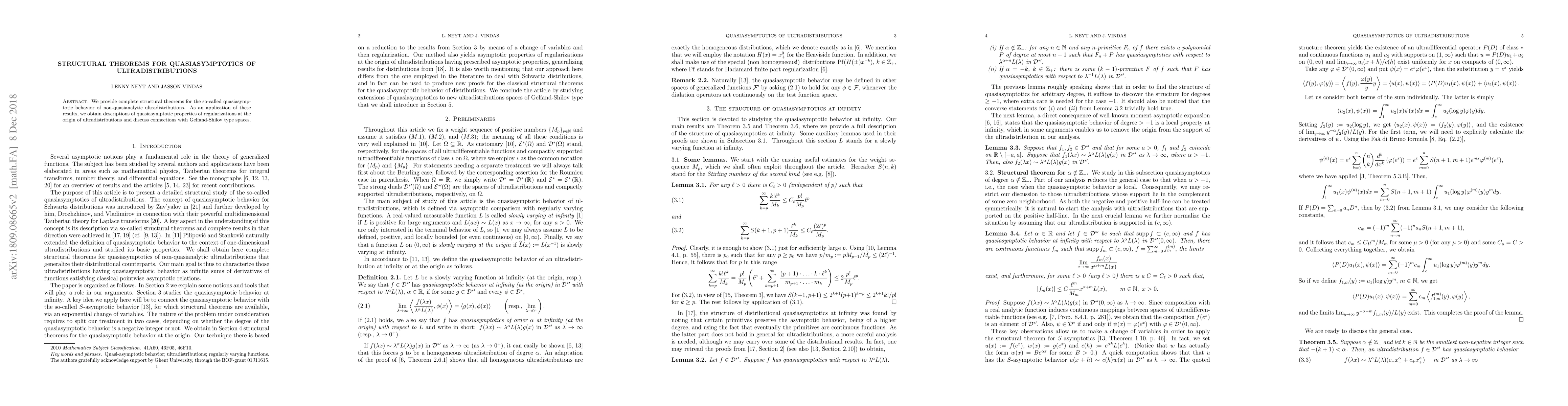 This paper establishes structural theorems for quasiasymptotic behavior of non-quasianalytic ultradistributions, providing insights into regularization properties at the origin and connections to Gelfand-Shilov type spaces.